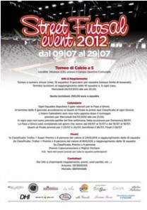 Prenderà il via lunedì 9 luglio, presso il Campo Sportivo Comunale di Vitulazio, il torneo di Calcio a 5 “Street Futsal Event 2012”. Al torneo prenderanno parte 16 squadre composte da otto giocatori divise in quattro gironi, e senza alcun limite di tesserati, il che sarà sinonimo di grande spettacolo e massima competitività. Sarà possibile iscrivere la propria squadra fino alle 20.30 di mercoledì 4 luglio, e la quota di iscrizione prevista è di 250 euro a squadra. Accederanno alla fase finale del torneo le prime due di ogni girone, che saranno sorteggiati proprio il 4 luglio dopo la scadenza del termine per l’iscrizione e che si giocheranno dal 9 al 12 e dal 16 al 19 luglio.