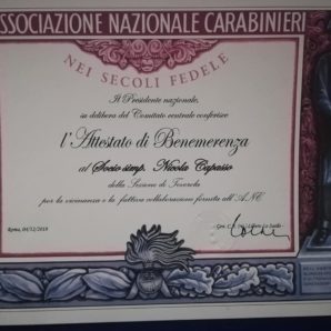 Importante onoreficenza per il maestro di arti marziali Nicola Capasso che pochi giorni fa è stato insignito della benemerenza, attestato di riconoscimento al merito, per il proprio impegno a supporto dell’Associazione Nazionale Carabinieri.