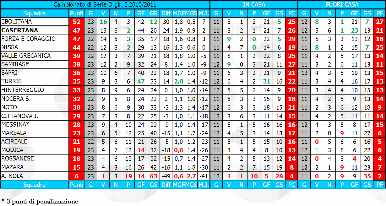 LA CLASSIFICA DOPO LA 24^ GIORNATA