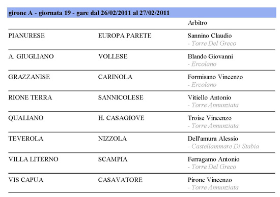 I direttori di gara impegnati tra sabato 26 e domenica 27 febbraio in Prima Categoria girone A