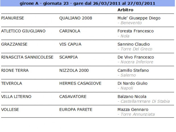 I direttori di gara impegnati tra sabato 26 e domenica 27 marzo nel campionato di Prima Categoria girone A
