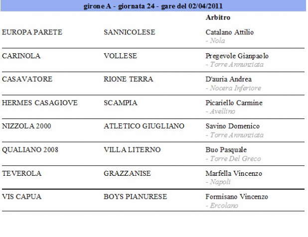 I direttori di gara impegnati sabato 2 aprile nel campionato di Prima Categoria girone A