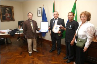 Per la prima volta nella storia dello sport brasiliano una fiaccola originale e “storica” risalente ai Giochi Olimpici di Roma 1960 è stata esposta a Rio de Janeiro nel palazzo del Consolato d’Italia, dove ha sede anche la delegazione Coni per il Brasile, grazie alla presenza di una delegazione casertana, guidata dal tedoforo olimpico Michele Centore, in questi giorni nel paese sudamericano per partecipare alla maratona “CorrItaliaBrasile” in programma a Curitiba, in occasione dell’”Anno dell’Italia in Brasile”, che prevede un ricco programma di manifestazioni. Nel salone d’onore del Consolato d’ Italia ha fatto visita al Console Generale d’Italia a Rio, Umberto Malnati, appunto, il casertano Michele Centore, tedoforo alle Olimpiadi di Roma, che era accompagnato dalla moglie, Annamaria, dal fotogiornalista Luciano Frattari e dal delegato Coni in Brasile, Alfredo Apicella. Al dottor Malnati, a nome del Presidente della Provincia dei Caserta, Domenico Zinzi, e del presidente del Comitato Coni di Caserta, Michele De Simone, è stata consegnata la medaglia commemorativa dei 50 anni delle Olimpiadi di Roma, i guidoncini della Provincia e del Coni di Caserta, patrocinatori della trasferta in Brasile, e altri trofei inviati dagli Enti casertani in Brasile. Analogo riconoscimento è andato al delegato Coni in Brasile, Alfredo Apicella, di origini napoletane, che tanto si prodiga per la diffusione dello sport tra i giovani italo brasiliani. Nell’occasione è stata anche presentata la maglia con la scritta “Provincia di Caserta” ed il logo dei 150 anni dell’Unità d’Italia, che verrà indossata domenica 29 in occasione della maratona a Curitiba, una delle più belle città brtasiliane con un larghissimo insediamento di nostri connazionali, da Michele Centore e da un gruppo di giovani brasiliani, figli di emigrati italiani, tutti di origini campane e casertane. L’iniziativa della Provincia e dal Comitato Provinciale Coni di Caserta si inserisce nell’ambito di una sorta di gemellaggio avviato con il paese sudamericano nel ricordo non solo del grande cestista Oscar Schmidt, per anni stella della Juve Caserta Basket e attuale testimonial della Caserta “sportiva” in Brasile, ma anche dei rinnovati rapporti attivati con la delegazione Coni per il Brasile, che ha sede a Rio de Janeiro, città punto di riferimento di grandi eventi sportivi sino al 2016 quando sarà sede delle Olimpiadi, dopo aver ospitato nel 2013 la Confederation Cup di calcio e nel 2014 i Campionati Mondiali di Calcio. Il Console Umberto Malnati nel plaudire all’iniziativa ha auspicato la prosecuzione dei rapporti in vista dei grandi appuntamenti sportivi che il Brasile si appresta ad ospitare e che proprio in coincidenza con le celebrazioni a Curitiba sono stati caratterizzati dalla venuta di una folta delegazione di operatori italiani, invitati da Confindustria e dall’Istituto Italiano Commercio Estero, tutti interessati a progetti e forniture per gli impianti sportivi e le altre infrastrutture necessarie per ospitare i Campionati di calcio e le Olimpiadi. E il delegato del Coni Apicella ha sottolineato la presenza nella delegazione anche di un gruppo di imprenditori campani, tra cui anche una azienda operante in provincia di Caserta, ed ha annunciato che a fine giugno sarà a Caserta, invitato dal Comitato Provinciale Coni, per una serie di incontri a carattere promozionale.