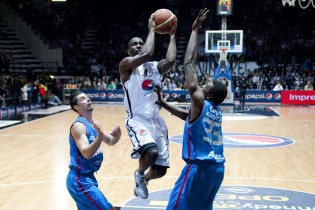 La Juve lotta, ci mette il cuore ma i due punti vanno alla Scavolini. Pesaro bissa così il successo di un anno fa allunga la serie positiva contro Caserta. Sacripanti è costretto a delle scelte obbligate anche se azzarda Rose nello starting five. La chiave è il ritmo; Pesaro cerca di alzarlo sfruttando anche i maggiori centimetri sugli esterni. Al 5’, sul 7:12, entrano i tifosi pesaresi e la partita si accende ufficialmente anche sugli spalti. L’attenzione, purtroppo, si sposta sul settore pesarese dove volano manganellate ed un tifoso viene ferito alla testa. Alla fine del primo quarto, comunque, è 21:20 con un Collins galattico (10) e tanto cuore dalle seconde linee Righetti, Tusek e Doornekamp. Equilibrio costante, Sacripanti si gioca il quintetto chiquito con Doornekamp da 4 (sull’amico Jones), Tusek da 5 mentre Cavaliero ha 3 falli sul groppone. La Juve resta ferma a 27 per 4’ giocando male in attacco (troppo stagnante e monocorde nel tiro pesante), la Scavo fa 0:10 di break con Flamini ed Hickman. Lo spettacolo non è granchè, Pesaro non affonda il colpo contro l’asfittico attacco bianconero (3/11 da 3, 6/17 totale al tiro nel secondo periodo) ed alla pausa lunga è solo -3. Si riparte e continua la tonnara generale. Di colpo si accende Jones: ‘Thrilla from Camilla’ spara due bombe in successione, irridendo il parterre e Pesaro vola sul 42:52 al 25’. Sull’orlo del precipizio sul -12, Caserta si rialza tornando a difendere durissimo, sporcando le linee di passaggio e riuscendo a correre. La difesa è la chiave di tutto. Le bombe di Maresca e di Doornekamp siglano il -4 all’ultimo ‘stop and go’. Collins compie il quarto fallo ma resta in campo mentre Pesaro vola sul +8 col missile di Cavaliero. Ancora ad un passo dal baratro, ancora capace di rialzarsi dopo i nove punti consecutivi di Righetti (70:71 al 36’). Sul -5 al 38’ Sacripanti prova la zona ma sono due palle perse di Smith e Righetti a condannare la Juve alla seconda sconfitta consecutiva. Almeno la Pepsi ci ha provato.