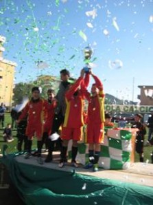 Si è disputato la ” 2^ Edizione della Monteruscello Cup” torneo riservato alle cat. Esordienti, che ha visto la vittoria del Capua vittorioso in finale per una rete a zero con gli Angeli Scugnizzi di Secondigliano. Le due squadre si sono qualificate alla finale del 26 Dicembre 2011 battendo nella fase eliminatoria rispettivamente il Real Casarea 3-0 ed il Monteruscello 1-0. Partita degna di una finale tra le due squadre sicuramente migliori del lotto. Il Capua parte subito in attacco e prima con Scamperti e poi con Di Donato sfiora la rete. Rete che arriva al 10’ con un tiro dal limite del capocannoniere Merola che di sinistro trafligge l’incolpevole n°1 degli Angeli Scugnizzi. Il primo tempo termina con il Capua che con il capitano di turno Di Monaco dai trenta metri lascia partire un bolide che si stampa sul palo. Il Capua va al riposo in vantaggio che detiene fino al termine della gara sprecando malamente molteplici occasioni da rete.