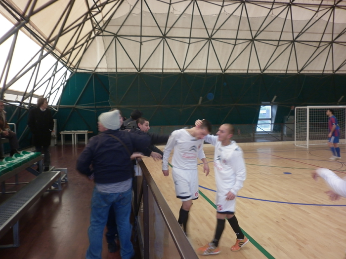 PRIMO TEMPO: I primi minuti sono di marca locale. Costi e Ridolfi scaldano il tiro ma non inquadrano lo specchio della porta. I rossoneri non sono scesi ancora in campo e la Simald Ardenza suona il campanello dell’inizio delle lezioni. Rufo serve su punizione Costi che dalla trequarti scaglia una sassata che centra in pieno il set alla destra di Viggiano e porta in vantaggio i padroni di casa (13’). I laziali sfruttano il black-out sammaritano e raddoppiano grazie ad un’azione personale di Rufo che beffa Viggiano in uscita (16’). Lieto chiama immediatamente il time-out e striglia i suoi ragazzi. Al ritorno in campo Bucciero, sugli sviluppi di una punizione dal limite, indovina il buco giusto nella barriera ma Rufo salva sulla linea (18’). Entra in scena anche Russo che chiama alla parata il portiere locale (19’) mentre Cecere manda alto (28’). Pian piano Bucciero sale in cattedra ed al 30’ si disimpegna con un dribbling d’alta scuola, colpisce la traversa ed Aiezza da pochi passi non interviene con il tap-in vincente.