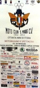 Un ricco programma di eventi e manifestazioni tra premi musica, mostre, esibizioni sportive, proiezioni di immagini e foto dei circuiti dell’epoca e del motociclismo sammaritano ma soprattutto il raduno motociclistico con il giro turistico e il ritorno in città con il passaggio per lo storico circuito dell’Arco Adriano dove si laureò campione Giacomo Agostini, diventato successivamente pluricampione del mondo. Questo il calendario della «due giorni» (19 e 20 maggio prossimi) organizzata dallo storico Moto Club di Santa Maria Capua Vetere nell’anniversario dei suoi ottanta anni. I dettagli dell’evento sono stati resi noti dal presidente del glorioso sodalizio, l’avvocato Antonio Mirra che, sostenuto dall’impegno profuso dai soci e dallo staff organizzativo, è riuscito a mettere in piedi un evento in ricordo dei pionieri delle due ruote che fondarono il sodalizio nel 1932. Nonostante si tratti di una festa, il Moto Club ha però voluto ricordare, con la sua immagine stampata sul materiale illustrativo, il campione Marco Simoncelli scomparso prematuramente l’anno scorso il cui ricordo è ancora vivo nella mente di tutti gli appassionati. Quando si pensa al Moto Club sammaritano affiorano alla mente tanti ricordi legati ad eventi sportivi, uno su tutti lo storico circuito dell’Arco Adriano al quale partecipò il campione del mondo Giacomo Agostini; momenti di socialità e protagonisti come il campione Franco Carrano.  Il Moto Club, che è fra le società sportive con la maggiore anzianità di affiliazione alla Fmi (Federazione motociclistica italiana), ha organizzato anche eventi collaterali come il «Concorso moto in vetrina»: esposte, nelle attività commerciali sammaritane, ci saranno moto d’epoca (e non) con le vetrine ispirate ad un tema motociclistico. La manifestazione è patrocinata dal comune di Santa Maria Capua Vetere, Regione Campania, Provincia di Caserta, Coni Caserta, Camera di Commercio e Fmi.
