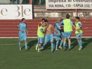 PRIMO TEMPO: L’Atletico Casalnuovo ha l’obbligo di sovvertire il pronostico, decisamente a favore dei padroni di casa, e parte a spron battuto su un campo, lo storico Pinto di Caserta, con dimensioni completamente più ampie rispetto ai terreni di gioco della Promozione . Ma ad andare vicina al goal ben due volte è la compagine locale con Di Gaetano che prima al 10’ non inquadra lo specchio della porta da fuori area, e poi al 12’ manca incredibilmente il tap-in da pochi metri, dopo che Stellato aveva ciccato la palla in rovesciata. E’ il giovane Russo a mantenere in piedi il centrocampo napoletano con un’imponente gioco di disturbo sulla trequarti e con varie incursioni, una delle quali al 17’ taglia come il burro la retroguardia locale ma non viene concretizzata a dovere. L’Intercasertana vuole certificare la propria superiorità con l’estro di Palma e Di Gaetano che non mette in moto la vena realizzativa dell’ariete Stellato. Così ci tenta il Casalnuovo con Pispico che al 32’ trova impreparata la difesa con una punizione battuta a sorpresa destinata a Giuseppe Niola, il cross del numero 10 ospite non viene finalizzato né da Giannino né dal fratello Nicola Niola.