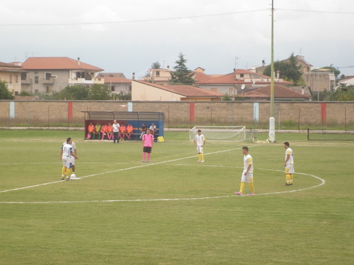 La Virtus Carano dice addio alla Coppa Italia. La società aurunca del presidente Achille Sauchella non trova la vittoria contro il Villa Literno e cede ai liternesi sia lo scettro di vincitore del girone 3 che la qualificazione ai sedicesimi di finale. Al “Lorenzo Montecuollo” di Cellole finisce 1-1 dopo una gara che solo nel secondo tempo ha regalato qualche sussulto. E’ stata una partita giocata a viso aperto da entrambe le compagini che ci tenevano a conquistare la prima soddisfazione della stagione. Complici i problemi societari che hanno provocato un forte ritardo nello svolgimento della preparazione, gli aurunci sono scesi in campo con una formazione nuova rispetto alle precedenti due uscite. Il tecnico Di Napoli ha schierato diversi degli acquisti messi sotto contratto lunedì scorso ed ha ammirato, soprattutto nel secondo tempo, la prestazione convincente di alcuni elementi, Ruberto, Russo e Gagliano in primis: per la guida tecnica caranese buoni segnali in vista dell’esordio casalingo in campionato di sabato contro l’Acerrana. Quindi, a passare il turno è il Villa Literno del coriaceo presidente Musto che dimostra una buona tenuta atletica e archivia la brutta sconfitta alla prima giornata di campionato contro la Frattese. Gli ospiti partono meglio e si rendono pericolosi per primi. All’8’ Sagliocchi stacca sull’angolo di Aversano, ma Gozzolino respinge con una grande risposta.  La partita scende di ritmo e bisogna attendere il 27’ per assistere ad una nuova azione. Sasaniello si porta al tiro da fuori area, bravo Gozzolino a non farsi beffare dal falso rimbalzo ed a deviare in angolo. Nell’ultimo quarto d’ora i padroni di casa insistono. Dopo i tiri di Marigliano (31’) e D’Amore (40’) finiti a lato, Buonanno ha una buona occasione al 45’ ma manda la palla tra le braccia di Musto. Nella ripresa i padroni di casa scendono in campo con maggiore verve. D’Amore lancia Fusco che non impatta bene e lascia sfumare l’azione (49’). La Virtus mette il piede sull’acceleratore, godendo anche dell’ingresso di Ruberto e Gagliano, e trova il vantaggio al 59’. Cross con il contagiri di Varone per il neo-entrato Ruberto che di testa realizza l’1-0. I locali necessitano di altri due goal per passare il turno e si buttano a capo fitto in avanti. Al 68’ Gagliano va sul fondo e cede palla a Marigliano che deve fare i conti con la deviazione in angolo di Musto. Un minuto dopo Ruberto ha la grande occasione per raddoppiare ma manda a lato dal centro dell’area (69’). La doccia gelata per gli aurunci giunge al 73’, nel momento di maggiore spinta. Il capitano liternese Di Fraia riceve palla da Diana e fa partire un pallonetto preciso che si va ad insaccare nel set. Il pareggio punisce oltremodo la formazione caranese che vuole la vittoria e la sfiora con due conclusioni di Gagliano e Ruberto che vengono rinviate dalla difesa. La partita finisce con il risultato di 1-1 ed a festeggiare è il Villa Literno che ora si prepara a giocare la gara valevole per i sedicesimi di finale.