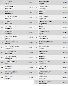 Nella giornata appena trascorsa il punteggio più alto è stato fatto segnare da 1926, che così recupera qualche posizione in classifica generale. Nel minicampionato ancora in vetta i Cugini del gol, che però sono inseguiti da vicino da Atl Parana, che sfrutta la doppietta di Denis contro l’inter e si piazza in seconda posizione, mentre nella classifica generale risulta essere un po’ più attardato. In classifica generale tiene Ztl 1000,anche se adesso deve gestire la rosa attuale per tutto il campionato, visto che ha già praticamente esaurito tutti i cambi concessi. Sempre nella generale Graki paga una formazione piuttosto azzardata, con un attacco che (compreso l’errore dal dischetto di Pato) non mette insieme nemmeno 12 punti. Questo fa si che la formazione del buon Graziano scenda dal secondo al quinto posto. Chi continua invece a confermarsi ad alti livelli è Real Intralot, che da quando è entrato a far parte del fantacasertano si è stabilito nella top ten e a quanto pare non ha certo voglia di fermarsi. Nel prossimo weekend calcistico spiccano due big match quali Napoli – Milan e Juventus – Lazio, sarà interessante vedere come i manager del fantacasertano si prepareranno a queste partite, e quali saranno le mosse che decideranno di mettere in atto.