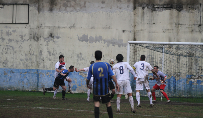 PRIMO TEMPO: Ad approcciare meglio nella prima frazione è il Taranto che, dopo aver tirato un sospiro di sollievo per l’occasione mancata da Manzo al 10’, assume le redini del gioco. Quello di marca tarantina è un palleggio infruttuoso, poiché Maiellaro non viene mai messo seriamente in pericolo. Unici brividi sono operati da Rosato (23’) e Gatto (36’) che, in entrambi i casi, non creano grattacapi all’estremo difensore locale. La mancanza di finalizzazione ospite non viene perdonata dal Gladiator che al 40’ mette in mostra tutta la propria concretezza. Manovra rapida dei nerazzurri con Gatta che allarga sulla fascia per Leone, il quale guarda al centro e dipinge un perfetto traversone: il centrale difensivo ospite Grieco viene sorpreso dal mancato colpo di testa di Del Sorbo e lascia, imperdonabilmente, oltrepassare il pallone che Tommaso Manzo si ritrova sulla testa e lo angola quel tanto che spiazza un incerto Maraglino. Ne ha segnati tanti di goal ma l’incornata non è una dei punti di forza del magistrale repertorio del folletto napoletano, giunto al suo quinto sigillo in maglia nerazzurra.
