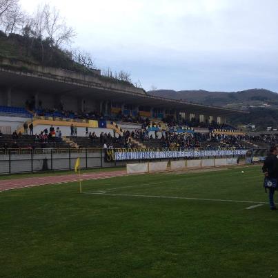 2′: Bel colpo d’occhio dall’impianto isolano. Oltre 4.000 sostenitori isolani assistono al big match del 30° turno del Girone H di Serie D, nel giorno della celebrazione della vittoria del campionato dei ragazzi di Sasà Campilongo. Brutalmente vuoto, invece, il settore ospiti a causa della disposizione del Prefetto di Napoli che ha vietato la trasferta alla torcida nerazzurra.