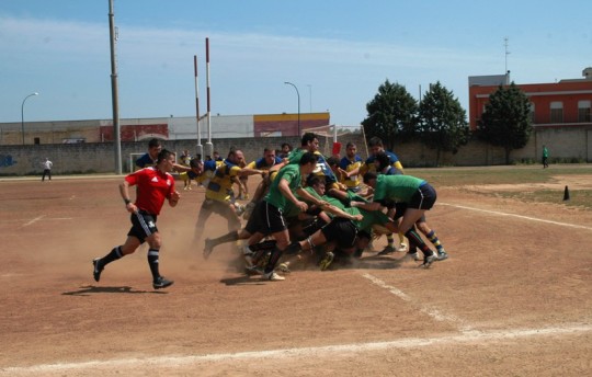 Inizia male l’avventura nei play-off di Serie C di rugby del Clan Santa Maria Capua Vetere che al ‘Trevisi’ di Campi Salentina si inchina allo Svicat Consolini al termine di una gara sottotono persa per 27-3 (2 mete a 0). Su un campo in terra battuta che non ha favorito nemmeno un po’ il gioco dei ragazzi di mister Pirro, il Clan, già un po’ incerottato, è apparso molto teso a dispetto dei verdi salentini di mister Spampinato. Anche l’orario, le 11, non è il classico orario di gioco per i sammaritani. Dopo le prime fasi di gioco è stato lo Svicat a portarsi subito avanti con una meta di capitan D’Oria, reduce da un infortunio, che si lancia su un calcio di spostamento sulla sinistra. Trasformazione che centra i pali di Frassanito e 7-0 servito. L’arbitro, Onori di Roma, è molto fiscale, ma penalizza un po’ i sammaritani con dei fuorigioco non sempre limpidi. I locali perdono Palma espulso per un placcaggio irregolare intorno al 25’, ma non si demoralizzano e mettono ben 2 punizioni, intervallate dal piazzato di Alessio Villano (sul 10-3). La partita continua ad essere fallosa e lo Svicat cerca sempre i pali e si porta sul 19-3, prima della meta con un ottimo lavoro di maul (il punto di forza, di solito, del Clan). A schiacciare l’ovale in zona di meta è Tardio. Il Clan perde per rosso Pierpaolo Cocchiaro e in precedenza già era rimasto in 14 per un giallo. Un ultimo piazzato e il punteggio si fissa sul 27-3 finale, con il presidente dei locali Camilli che commosso va abbracciare i suoi giocatori. Volti scuri in casa Clan, ma resta da salvare la buona difesa per lunghi tratti. A Santa Maria domenica si deve cercare l’impresa e vincere con almeno 25 punti di scarto, altrimenti addio Serie B, ma i gialloblù di Pirro sono capaci di qualsiasi cosa.