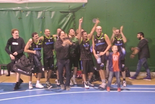 LA CRONACA: L’atmosfera è quella delle grandi occasioni, gli All Green sanno di essere con le spalle al muro e iniziano la gara con una carica agonistica che tramortisce i padroni di casa; Vetere fa canestro a occhi chiusi, i soliti Del Basso e Conte iniziano da subito a macinare gioco, mentre i FESTAioli subiscono inermi la “valanga” pedemontana, non riuscendo a tenere alcuna penetrazione in difesa e sbagliando in attacco canestri elementari a pochi centimetri dal ferro, sprofondando sul -12 a pochi minuti dalla fine del primo quarto. Dopo un timeout “chiarificatore” i FESTAioli mettono in campo due giocatori che alla fine saranno tra i protagonisti della partita, Luca Cicia e De Angelis che, insieme all’ottimo Baccaro, danno il la alla rimonta dei padroni di casa. I cambi sono efficaci e bloccano subito gli All Green che iniziano ad avere problemi in attacco, mentre i FESTAioli Dalmesse Italia recuperano la serenità in campo mancata nei primi minuti. Nel secondo quarto gli All Green si affidano al “gigante” Mainolfi, che si fa sentire a rimbalzo e in attacco e inzia un tesissimo duello sotto le plance col lungo della squadra di casa Iuliano; Affinita però, fin li abbastanza anonimo, infila una serie di canestri consecutivi e riporta sotto in poche azioni la propria squadra, riequilibrando la partita. Ma proprio nel miglior momento dei FESTAioli accade un espisodio molto importante nell’economia della gara: Iuliano, marcato da Mainolfi, fa canestro da vicino dopo una azione concitata, e il lungo pedemontano reagisce in maniera incomprensibile, assestando uno schiaffone sulla testa di Iuliano davanti agli occhi increduli dei tifosi dei padroni di casa, dei giocatori in campo e degli arbitri. Affinita interviene temendo una reazione del compagno di squadra Iuliano e spinge via Mainolfi per evitare una zuffa, ma gli arbitri mal interpretano questo gesto, decretando una doppia espulsione ai danni di Mainolfi e dello stesso incredulo Affinita, che deve accomodarsi in tribuna nel suo miglior momento. Ci pensano però Veccia e Cicia a “vendicare” il proprio compagno, con altri canestri consecutivi che consentono ai festaioli di chiuedere l’intervallo sul punteggio di 36 a 38 per gli ospiti. ll terzo quarto è quello in cui i FESTAioli prendono in mano le redini della gara, nonostante sia Conte che Del Basso non abbiano alcuna intenzione di mollare la presa; ancora Veccia, De Angelis ed un Astarita combattivo tengono la partita sul filo dell’equilibrio. Il quarto quarto è il tempo dei lunghi: Iuliano inzia a dominare sotto canestro praticamente prendendo ogni rimbalzo, l’ottimo Cicia esce per 5 falli e De Angelis e Astarita, quest’ultimo impiegato nel ruolo di ala piccola, non sbagliano un colpo. Piedimonte si affida totalmente ai propri lunghi, gli esterni non fanno altro che superare centrocampo e passare la palla a Conte o Del Basso per il loro uno contro uno (non a caso tutti i punti segnati dagli All Green dell’ultimo quarto sono segnati da questi due giocatori) ma non basta, i FESTAioli dimostrano di essere più compatti e arrivano all’ultimo giro di lancette in vantaggio, costringendo gli All Green al fallo sitematico: Iuliano e De Masi fanno 2 su 4 ma tanto basta, Vetere nell’ultima azione non riesce neanche a tirare. Finisce così una bellissima partita ed un campionato avvincente; i FESTAioli, ancora nel pieno dei festeggiamenti, si qualificano quindi alla partecipazione della Coppa Italia Nazionale Uisp, dove proveranno a confermare quanto di buono è stato fatto durante l’anno e dove cercheranno di portare a tutti i costi il titolo nazionale a Caserta per la prima volta nella storia.