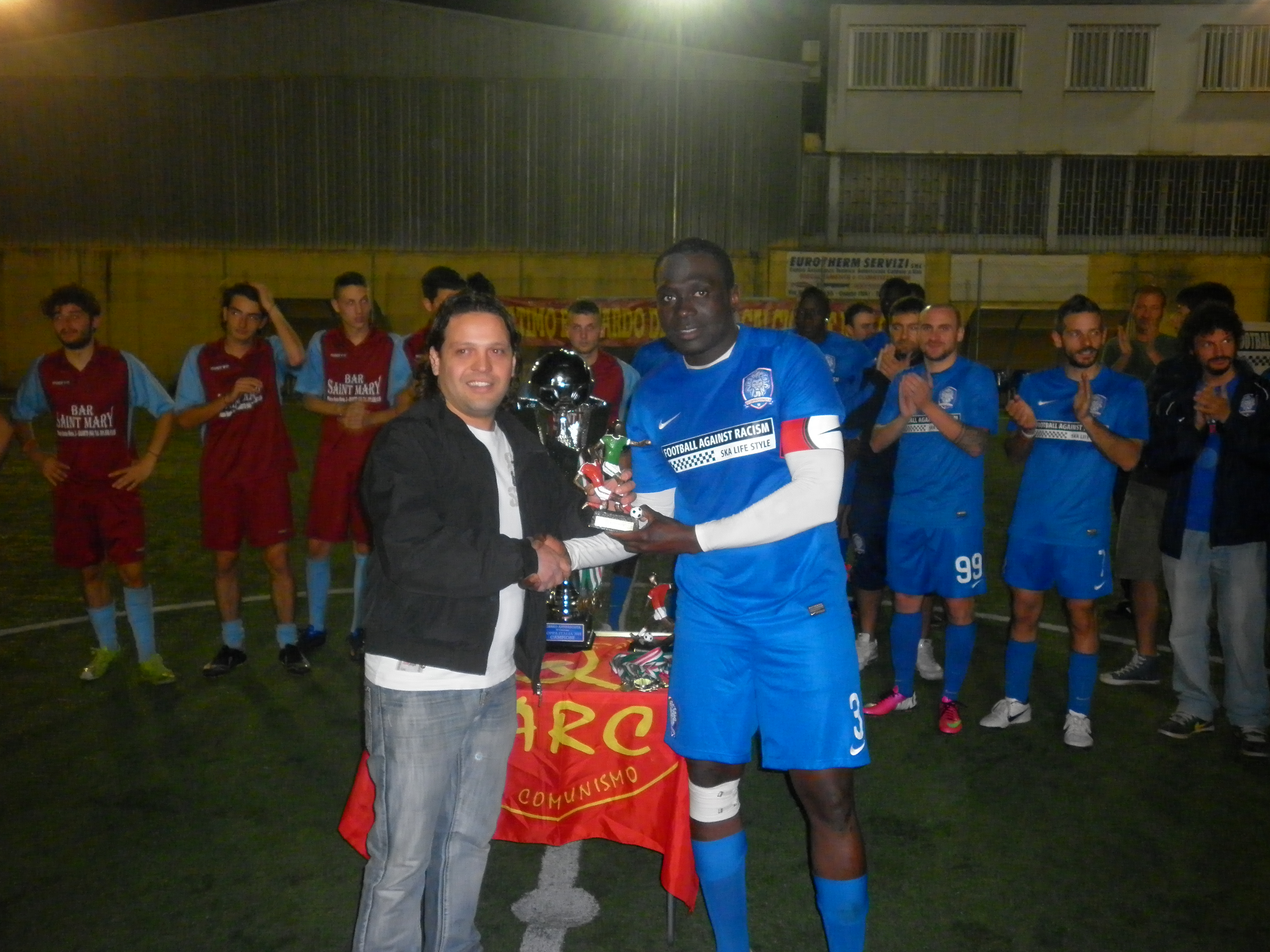PREMIAZIONE: Al fischio finale dell’arbitro, scatta la festa dei locali a cui fa da contraltare la delusione dei Lions che tornano a casa rammaricati per un trofeo solo sfiorato e perso negli ultimi attimi di gioco. Va dato atto ai vincitori di averci creduto fino all’ultimo secondo, ma ciò non cancella l’ottimo cammino della selezione antirazzista che ha superato diverse squadre accreditate al titolo finale (vedi la Real Partenope del capocannoniere Varriale) e si è assicurato lo scettro di miglior difesa della competizione. E’ ovvio che la mancata vittoria del titolo crei non poca amarezza, ma va sottolineata la cornice di valori sotto cui è stato disputato il trofeo: divertimento calcistico nel segno della completa unione umana tra gente di razza, colore e tradizioni diverse. This is Football!