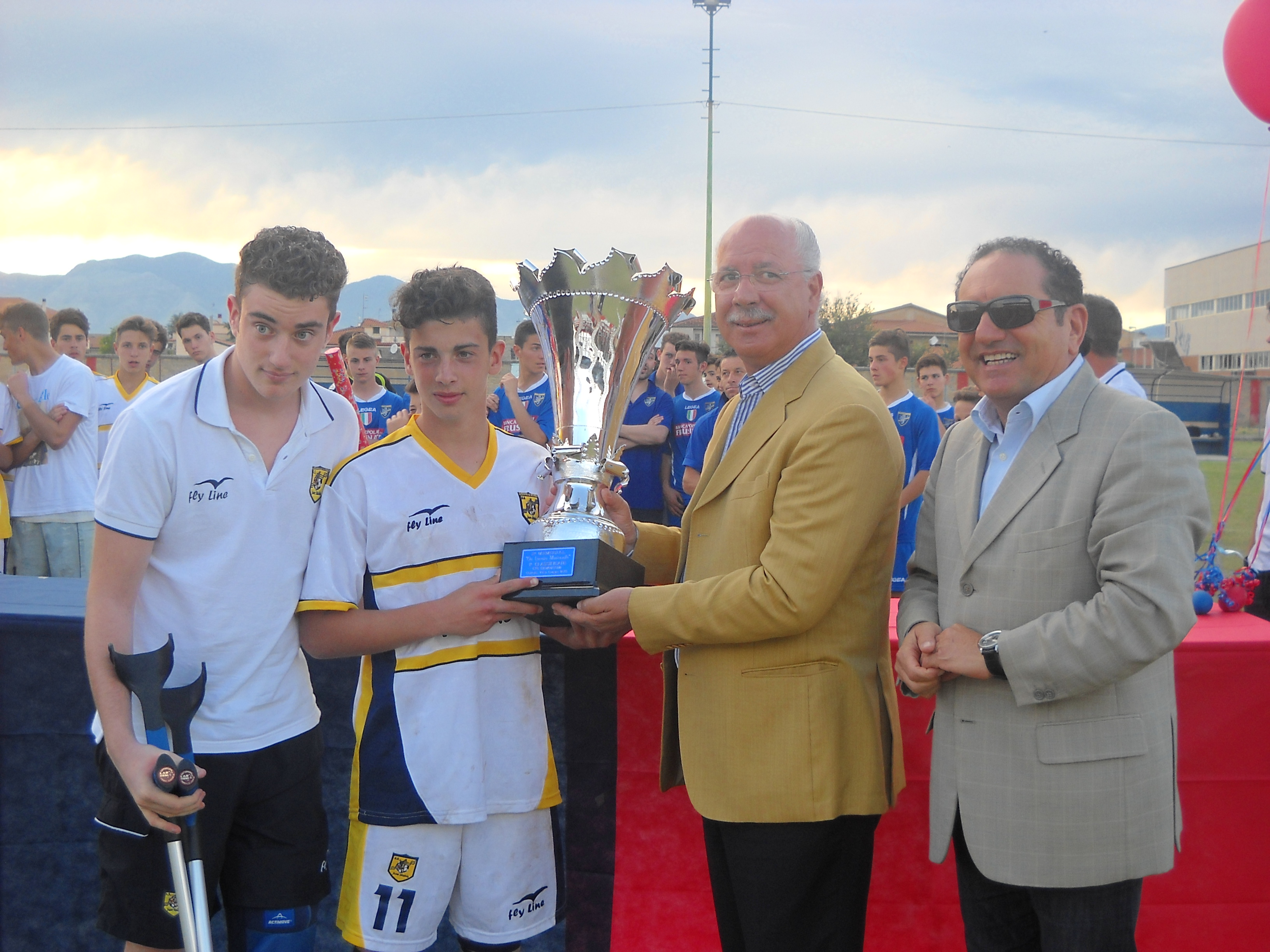 La Juve Stabia si aggiudica il trofeo. Subito dopo si sfidano per la vittoria del torneo, le due compagini che hanno vinto i rispettivi gironi: Frosinone e Juve Stabia. Il mister stabiese, Panico, propone un 4-4-2 con Matassa e Procida in avanti, Meola e Strianese a disegnare le geometrie a metà campo e la forte coppia difensiva Schiavi – Borrelli a blindare la porta difesa da Mascolo. Dall’altra parte il tecnico Bragaglia propone un 4-3-3 con Raschiatore punta centrale, supportato ai lati da Zuccaro e Tomasso con Sbaraglia nella zona mediana ad ispirare il trio d’attacco. I gialloblu stabiesi partono subito forte e dopo 5’ passano in vantaggio grazie ad un autorete di Scala che infila nella propria porta nel tentativo di intercettare il suggerimento di Matassa che intendeva servire Procida tutto solo a centro area. I ciociari accusano il colpo ed al 12’ subiscono il raddoppio ad opera di Matassa che vince un contrasto in area e da due passi batte Montella con un preciso piatto destro. Il Frosinone prova a reagire al 19’ sull’asse Tomasso-Raschiatore, ma quest’ultimo è anticipato al momento del tiro dalla tempestiva uscita bassa di Mascolo. La prima frazione si chiude su un’ottima giocata della Juve Stabia con Strianese che serve Procida, il quale prova la mezza rovesciata sfiorando il palo (33’). In apertura di secondo tempo è lo stesso Strianese a provare il destro a giro, ma Montella è attento e blocca (46’). Al 61’ il neo entrato D’Aguanno prova a dimezzare lo svantaggio su una punizione dalla trequarti sinistra, ma Mascolo si supera deviando in angolo il potente collo esterno dell’attaccante frusinate. I gialloblu controllano il ritmo del match e sfiorano il tris al 66’ con Borrelli che impatta al volo sul cross di Iervolino sfiorando la traversa. Il Frosinone ha l’occasione di riaprire il match nel recupero, ma Raschiatore da ottima posizione non inquadra la porta (73’). Così dopo 5’ minuti di recupero l’arbitro Galluccio della sezione di Caserta decreta con il triplice fischio la vittoria della partita e quindi del torneo per le “vespe” gialloblu, che possono alzare al cielo il trofeo consegnato nelle mani del capitano Procida, dal Primo Cittadino cellolese Aldo Izzo. A Lorenzo Piacentino, classe ’99 della Ternana, va invece il riconoscimento come miglior giocatore del torneo(in basso il tabellino della finale tra Juve Stabia e Frosinone).