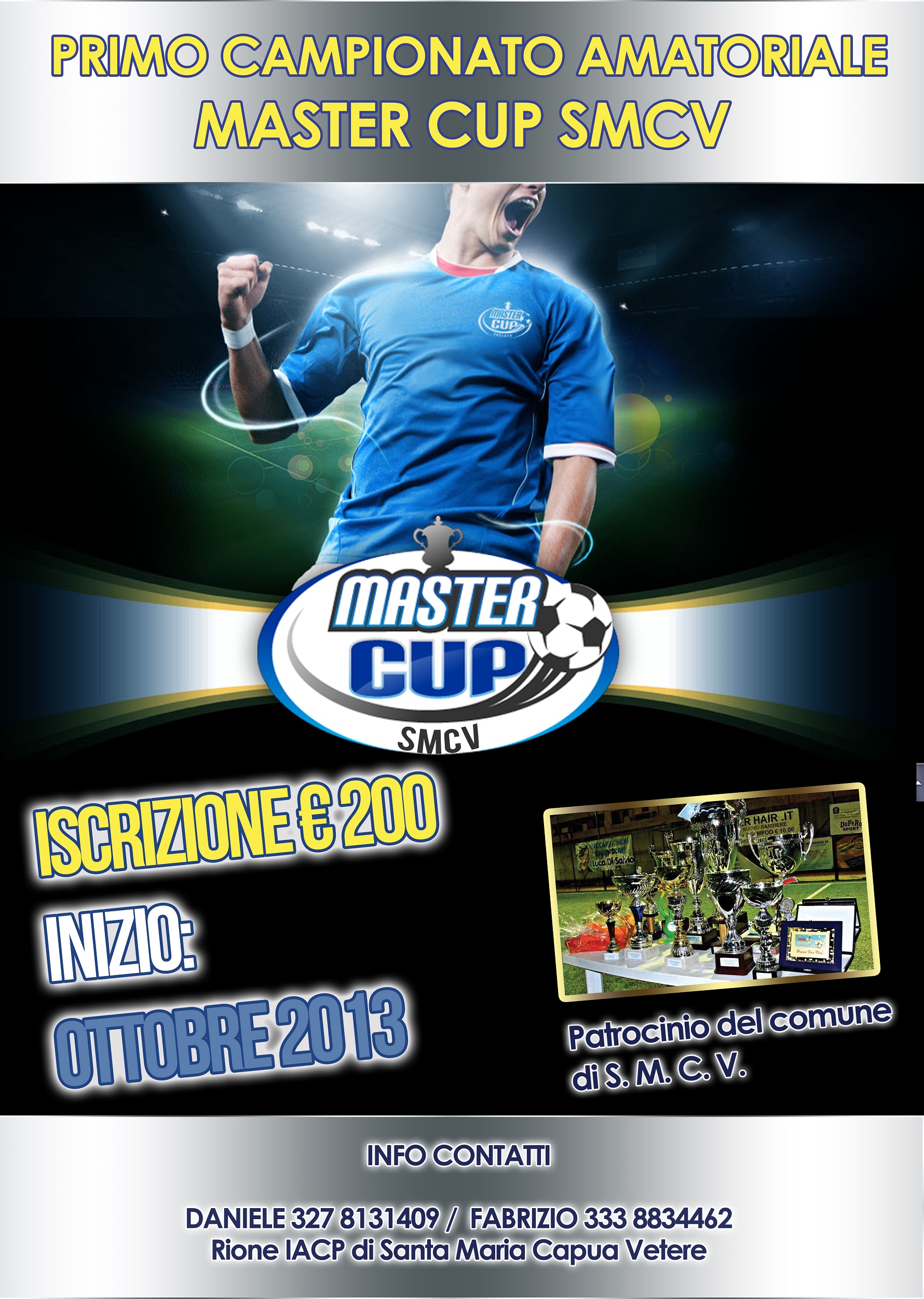 E’ previsto per ottobre 2013 il primo campionato amatoriale “Master Cup – SMCV”. Questo campionato di calcio a 5, si svolgerà presso i nuovi campi sintetici nel Rione IACP di Santa Maria Capua Vetere. La quota d’iscrizione è di 200€ a squadra. Il campionato avrà una durata di circa sei mesi. Le prime 6 squadre che consegneranno il modulo d’iscrizione per prendere parte alla “Master Cup – SMCV” riceveranno in omaggio 5 completini da gara. Potranno partecipare alla manifestazione, come da regolamento federale solo i giocatori che hanno compiuto 15 anni di età. I limiti per i giocatori tesserati sono: CALCIO A 11, tesserati massimo con una formazione che prenderà parte al campionato di “Promozione”. CALCIO A 5, tesserati massimo con una formazione che prenderà parte al campionato di “C2”. Dopo l’ottima organizzazione del “Torneo Fiocco Bianco” che ha visto la partecipazione di 32 squadre, gli organizzatori dell’evento, Daniele Luongo e Fabrizio Muto si sono posti l’obiettivo di raggiungere almeno 16 adesioni, per rendere il campionato ancora più avvincente. Non è escluso che la squadra vincitrice del campionato, possa partecipare ad una competizione che vede protagoniste altre squadre della provincia di Caserta. Per qualsiasi info e per il ritiro dei moduli d’iscrizione ci si può rivolgere sia ai campetti siti in Via Giotto a S. Maria Capua Vetere, oppure contattando gli organizzatori. Daniele Luongo (3278131409) o Fabrizio Muto (333 8834462).