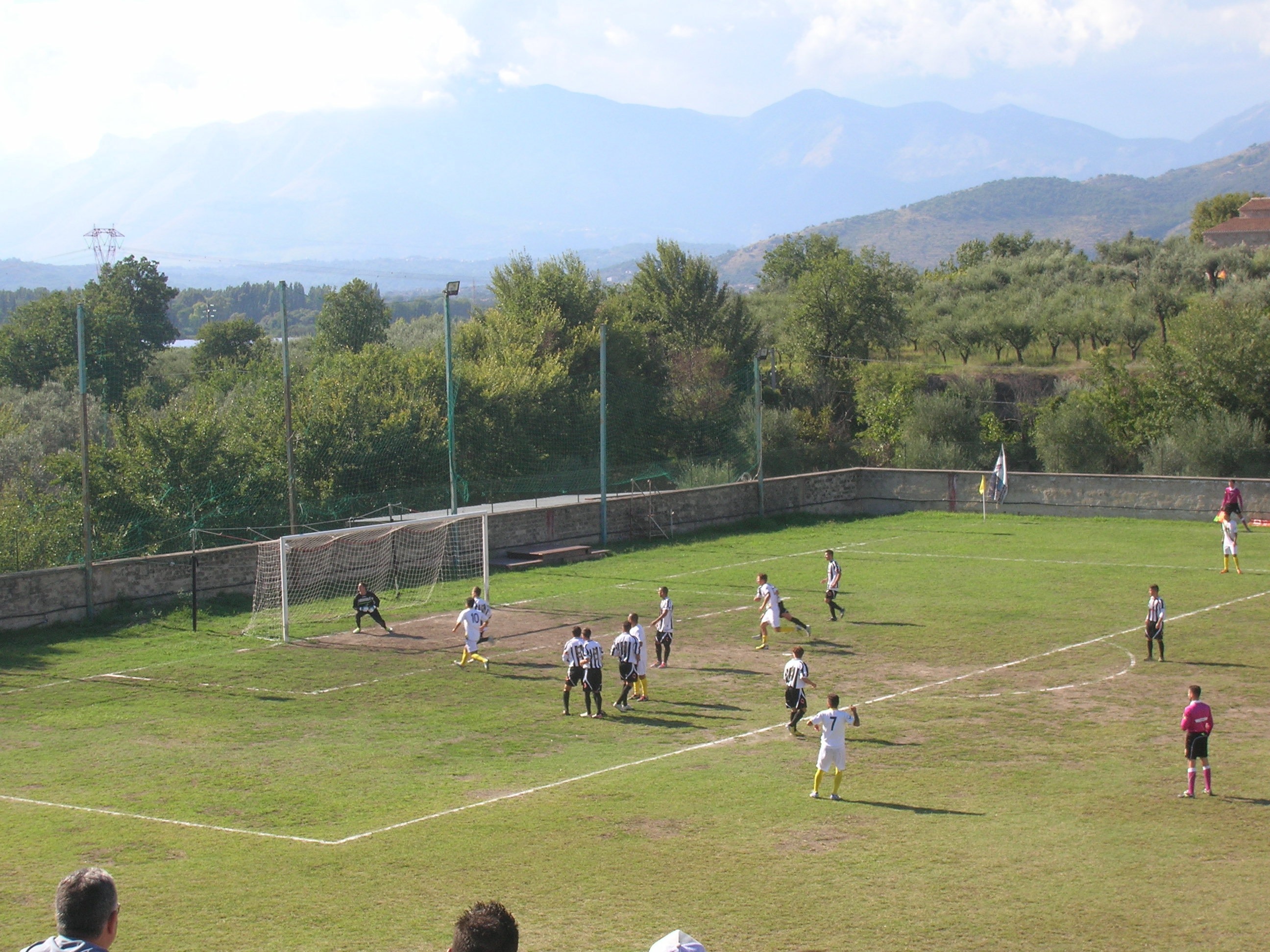 PRIMO TEMPO: Pronti via ed è subito gol: calcio di punizione dal limite conquistato da Caterino, si porta sul pallone Barone Lumaga, destro a giro e palla che va a togliere le ragnatele dall’incrocio alla destra di Listo. Prima prodezza personale per il funambolico attaccante napoletano, fiore all’occhiello della campagna acquisti effettuata dal presidente Isidoro Vrola, che non sbaglia dalla sua mattonella preferita (5’). Gli ospiti, colpiti a freddo, provano a reagire con una sgroppata sulla destra di Longobardi che crossa di destro, Allocca smanaccia la sfera che finisce sul destro di Conte che batte a rete ma si vede respingere la sfera da un prodigioso intervento dell’estremo difensore aurunco che salva la propria porta (12’). Ancora i bianconeri pericolosi al minuto 20’: sul traversone dalla destra di Simonetti, l’accorrente Codardo prova il diagonale sinistro a volo sfiorando il palo. Scampati i pericoli gli aurunci si ributtano in avanti con lo scatenato Barone che va via ad un avversario sulla sinistra ed imbecca con un preciso assist il bomber storico sessano, Caterino, che dal cuore dell’area prova il destro al volo ma alza sulla traversa (24’). L’ultima occasione del primo tempo nasce ancora da una combinazione Caterino – Barone: il passaggio filtrante dell’attaccante di Falciano del Massico è splendido ma Barone si allunga il pallone nel controllo e viene fermato dalla difesa avversaria.