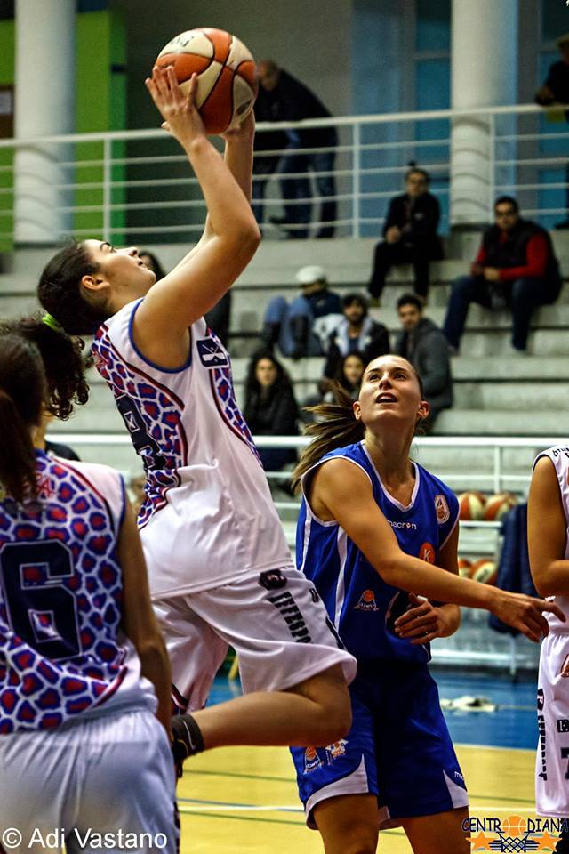 la cronaca. Gara fin dall’inizio accesa e vibrante, fatta di tanti piccoli contatti e di duelli individuali. Le attese delle vigilia vengono rispettate. Pierdicca e Terenzi si appoggiano al vetro calamitando qualsiasi rimbalzo e facendosi trovare pronte col post basso da cui è facile per loro realizzare. Casagiove risponde da pari con Correra che firma 6 dei primi 8 punti di squadra, ma che limitata dai falli, viene sostituita da Politi. De Luca si prende la linea di fondo e va a realizzare, rispondendo a Pentucci, ma ancora Pierdicca, incontenibile in questa fase sigla due jumper facili per il +5. Sulla sirena però la tripla di Zampella rimanda ogni verdetto. Siamo 14-15 dopo 10′. Terenzi apre i giochi in lay up palesando ancora i dubbi in difesa sulle penetrazioni dal mezzo angolo, Popolo e Zampella rispondono con tanto cuore e intensità a rimbalzo. La panchina pesarese trova punti preziosi con Canestrari e Franca, poi è ancora Terenzi con un’altra penetrazione magistrale a strappare applausi per il 20-26, ma in questa azione e in un successivo scontro di gioco la lunga nazionale under si infortuna e non rientrerà. Alla pausa lunga siamo 22-26 dopo il jump della Giannelevigna. Ripresa shock per Casagiove che dopo un avio in sordina, in cui solo Correra e Zampella riescono a produrre, becca un 11-0 mortifero che cambia la partita e la fa sprofondare fino al -13 (26-39). Non siamo ancora a fine quarto ma il punteggio non muterà più, questo perchè coach Moretti toglie Anastasio fino a quel momento a 0 punti con 0/7 dal campo, e butta nella mischia Natale con il tentativo di bloccare le trame di gioco offensivo. E la mossa riesce con Flauret ingabbiata e ben tre palle perse per infrazione di 24″. L’ultimo quarto Moretti si gioca anche la carta del quintetto più basso con De Luca da tre e Natale addirittura da numero 4, con il rientro di Anastasio. I risultati si vedono. Dopo il -15 (28-43) siglato da Biagini, che inizia il suo personale quarto periodo, Correra e Anastasio trovano finalmente la strada dalla lunga distanza. La difesa però perde qualche giro e anche Canestrari imbuca la tre. La squadra di Moretti si erge sulle spalle delle sue giovani e riesce a tenere botta. Natale annulla prima Flauret e poi Braida, De Luca, pur limitata da un problema al naso precedente alla gara, prende le misure alle lunghe avversarie e Correra riesce a catturare parecchi rimbalzi. Solo Biagini è brava a sfuggire alla marcatura avversaria e a siglare canestri che pesano come macigni. Correra però non si arrende e carica la squadra, prima segnando un gioco da tre punti, poi servendo un bell’assist a De Mauro che insacca il jump. Poi brava Natale a seguire con lo sguardo i tagli della De Luca che si prende i liberi. E’ un parziale di 7-0 che riapre la gara sul 43-48 a 2’20” dalla fine. Potrebbe essere la svolta ma nel momento determinante ancora una volta Biagini sfugge alla marcatura diretta e segna. Sarà ancora lei a sancire il canestro del del +8. A chiudere i giochi ci pensa Braida dalla lunetta a partita finita. Finisce 45-55, ennesima sconfitta del Centro Diana che ha mostrato margini di miglioramento.
