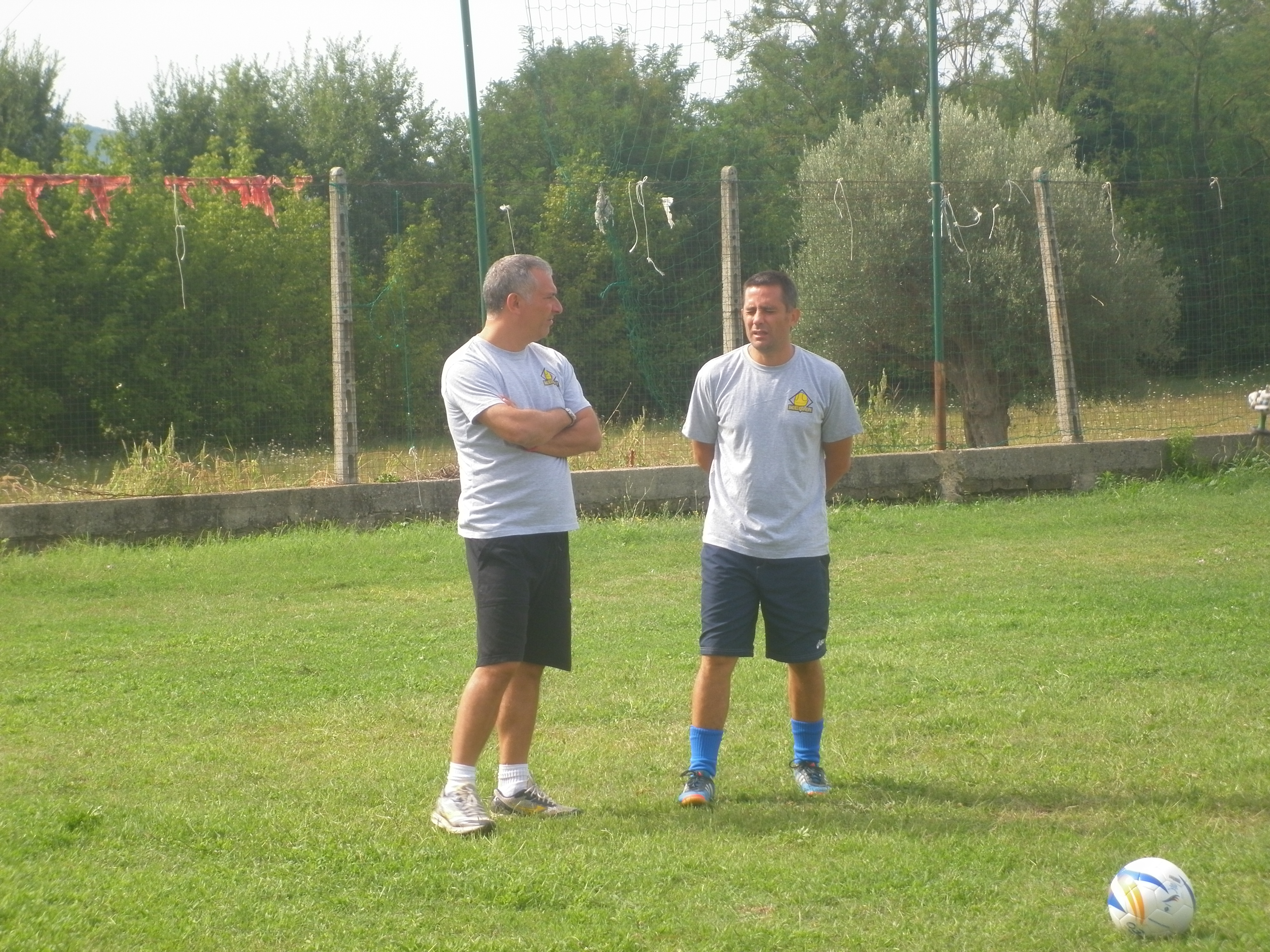 Il tecnico Casaccio a colloquio con il vice Lemma (foto Domenico Vastante)
