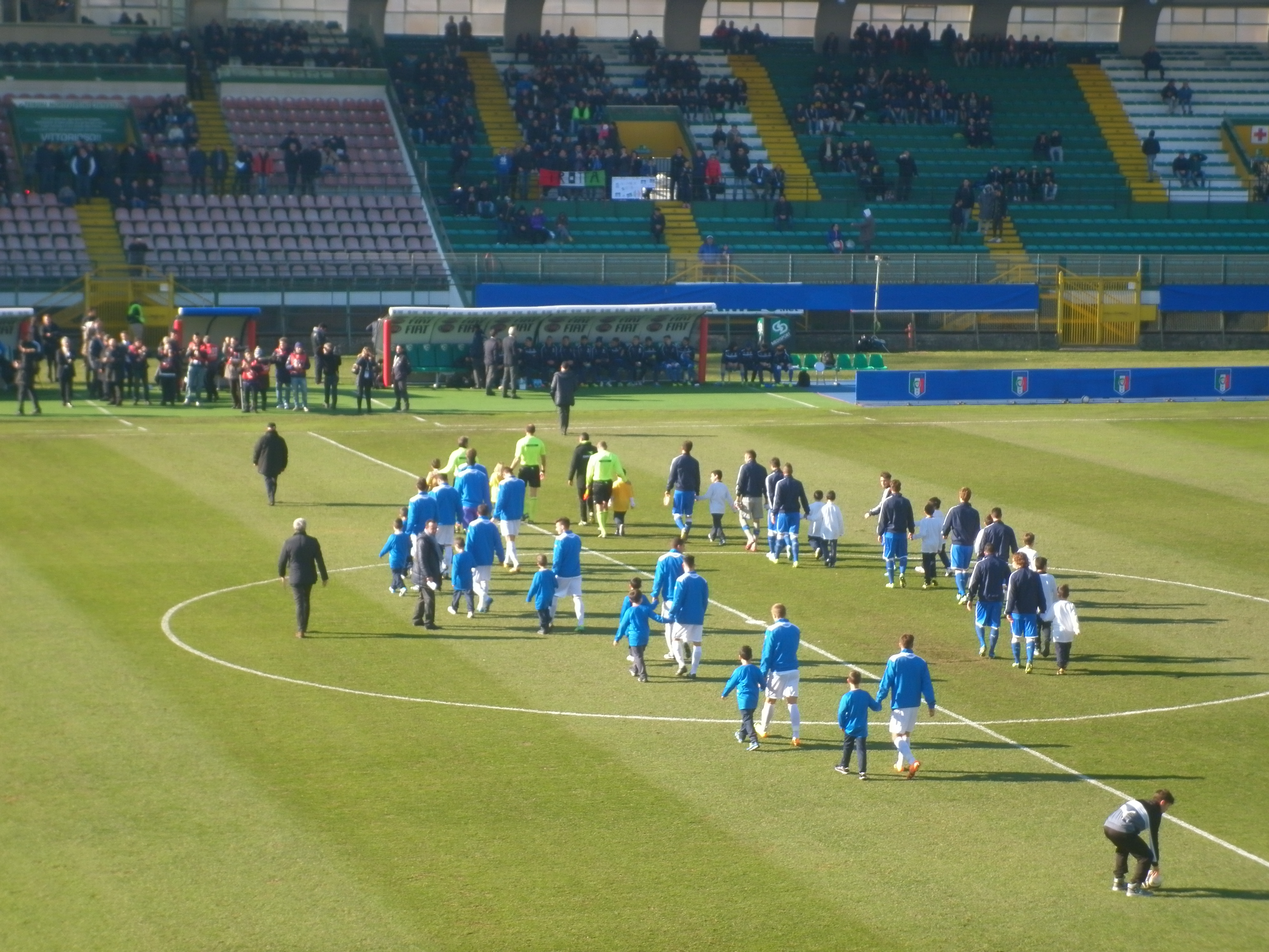53’: Prima palla toccata da Marcello Trotta con la maglia azzurra. Egli riceve il passaggio di Fossati, controlla palla ed esegue in girata, dal limite dell’area, una conclusione che viene murata dal proprio marcatore.