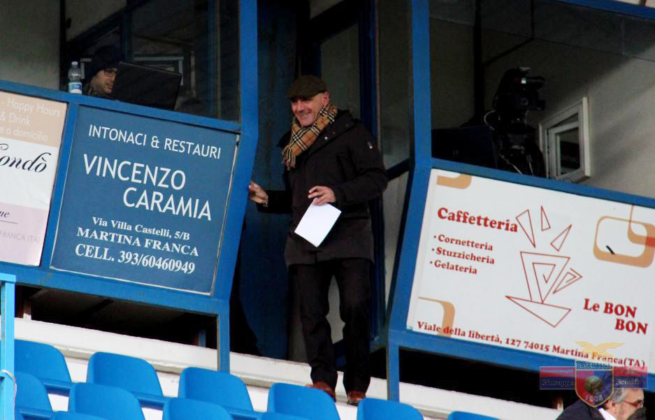 A pochi minuti dal fischio di inizio di Martina-Casertana, scorgiamo sulle tribune del ‘Tursi’ l’ex allenatore rossoblù Enzo Maiuri. Residente a Taranto, ne ha approfittato per vedere da vicino la ‘sua’ Casertana. “E’ emozionante rivedere questi colori in Lega Pro. Ho ritrovato tanti amici con cui ho condiviso una esperienza bellissima. La Casertana? Ha tutte le qualità per partecipare alla prossima serie C e sono certo che il presidente Lombardi continuerà a regalare tante gioie ai tifosi. Chi vince oggi? Spero sia una bella partita…”