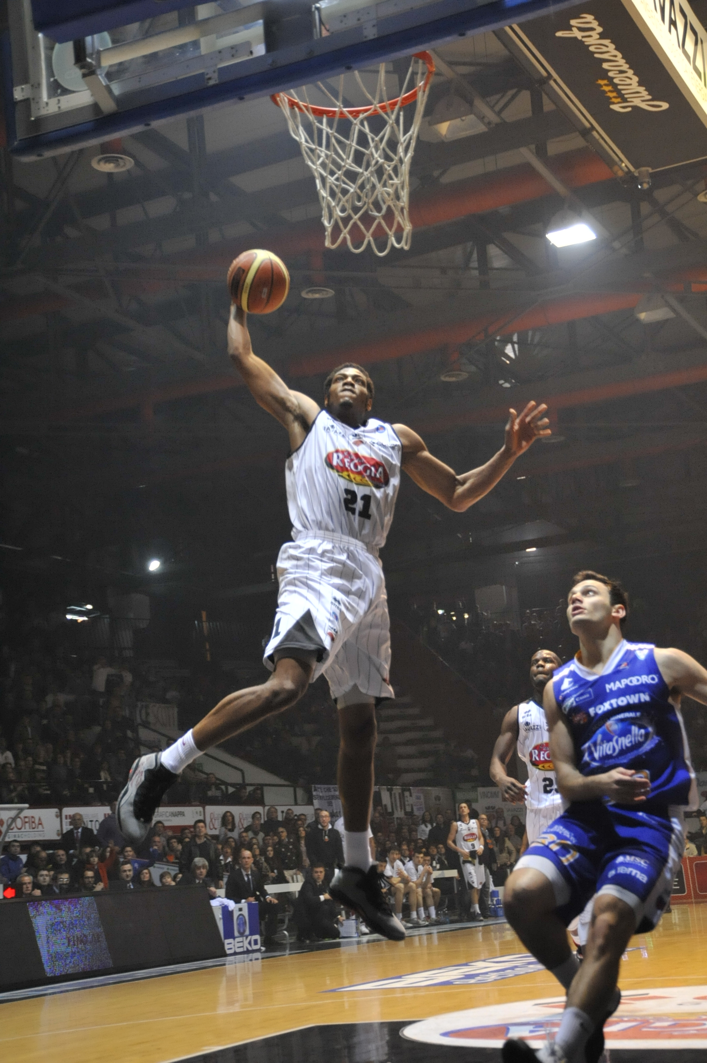 Brooks schiaccia sulla testa di Stefano Gentile (foto Filauro)