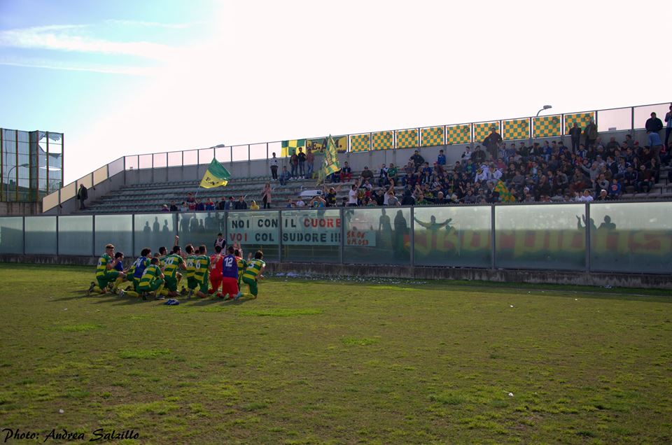 SECONDO TEMPO: Sulla falsariga della prima frazione, approccio pimpante dei gialloverdi che triplicano al 50’. Sugli sviluppi del cross di Citro, Cerreti esce di pugno ma butta la palla sulla testa di Allegretta e la palla carambola in rete. Doppietta per il gioiellino marcianisano classe ’93 che arriva in doppia cifra, nonostante sia partito appena dieci volte dal primo minuto. Ed al 63’ Allegretta rischia perfino di portarsi il pallone a casa con la tripletta (per dirla all’inglese hat-trick): sul traversone di D’Anna, egli va sua spaccata ma il pallone termina alto.