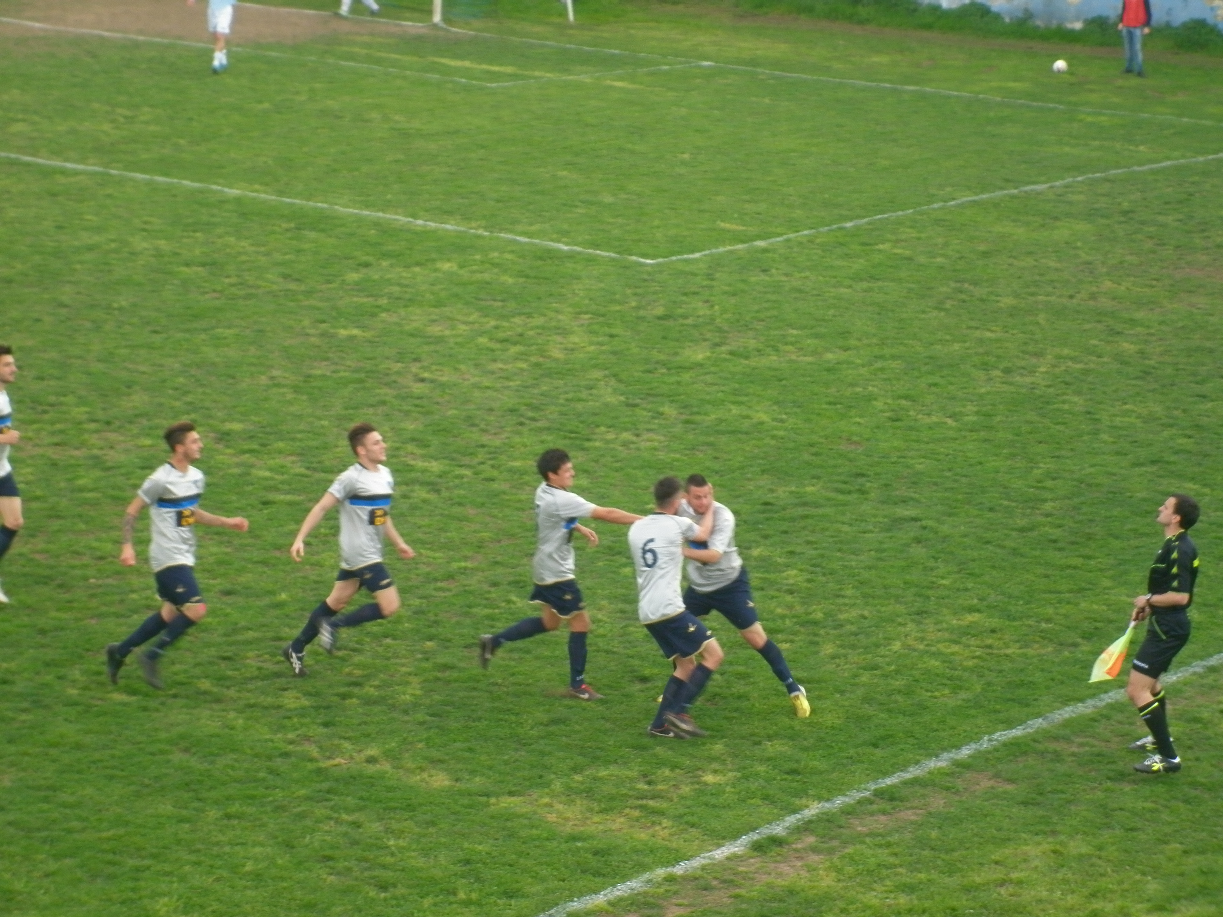 PRIMO TEMPO: Gara da ultima spiaggia per il Gladiator che ha bisogno della vittoria a tutti i costi per continuare a sperare nella salvezza. Approccio deciso dei padroni di casa che mettono la contesa sui binari più ambiti al 6’. Lancio con il contagiri di Diana che scavalca la retroguardia e pesca De Falco, in una posizione che non è ritenuta di off-side (6’). L’attaccante irrompe in area, aggiusta la mira e scaraventa la palla in fondo al sacco. Sentita esultanza del sammaritano doc che realizza il suo secondo goal stagionale, dopo il rigore ininfluente trasformato contro il Francavilla sul Sinni. L’assenza di un centravanti del calibro di De Gennaro si fa sentire tra gli ospiti che, comunque, si rendono pericolosi solo su calcio piazzato: in ogni caso la retroguardia sbroglia la matassa. I neroazzurri gestiscono la gara ed al 19’ ricevono un inatteso regalo da Caridi. Approfittando del suo controllo peccaminoso, Del Gaudio gli ruba la sfera ed irrompe in area, tutto solo davanti a Pentimone: incredibilmente egli cincischia al momento del tiro e spreca sul fondo una ghiotta opportunità (19’). Di occasioni non se non contano tante, complice le condizioni di un terreno di gioco che etichettare come pessimo è un eufemismo. Manovra del gioco in mano a Bonavolontà e Carfagno, che si affidano molto spesso alle galoppate di Mazza e Degli Innocenti. Il gioco viene interrotto al 29’ per l’infortunio di Cati che era caduto rovinosamente, in occasione di un contatto precedente, e viene trasportato immediatamente in ospedale da un’ambulanza (per lui lussazione alla spalla sinistra). Dopo qualche attimo di panico, Del Gaudio si dimostra l’atleta più spigliato in campo e lo certifica al 38’ con un’azione caparbia. Il talento napoletano ci crede su un pallone innocuo, salta Tundo e, appena entrato in area, viene atterrato da Maglione che abbocca alla sua finta. L’arbitro non ha esitazioni nel concedere il penalty, di cui s’incarica Diana (38’). La conclusione è angolata ma Pentimone è perfetto a respingere ma non blocca la palla che ritorna nello spazio d’azione di Diana che ritenta di testa: il portiere si rialza e si ritrova la palla tra le braccia. Il pipelet classe ’94 di Gravina di Puglia si conferma imbattibile tra i penalty, avendo parato il sesto rigore stagionale. Solo al 44’ arriva la prima conlusione dei metapontini con Di Senso che calcia a lato da fuori area (44’). Un minuto dopo Caridi s’impossessa di un palla vacante in area, aggira il proprio marcatore e sfiora l’angolino opposto in spaccata (45’). Finale in crescendo degli ospiti che tornano negli spogliatoi, in seguito alla punizione di Di Senso terminata oltre la traversa (46’).