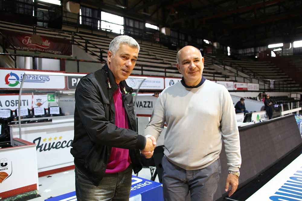 Casertana e Juvecaserta si sono ritrovate stamane al Palamaggiò per sugellare la sinergia dopo la visita dei bianconeri la scorsa settimana. Mister Guido Ugolotti sottolinea l’importanza di eventi del genere: “Casertana deve essere fiera e orgogliosa di avere due squadre così. Nel mondo dello sport bisogna essere anche un po’ scaramantici. Loro vinsero fuori casa e noi abbiamo fatto altrettanto contro il Chieti. Ma al di là delle battute credo sia bello e importante avvicinare due sport come questi. Hanno una struttura importante, storica e gli facciamo un grande in bocca al lupo per il raggiungimento dei playoff. La Supercoppa? Ci proveremo, è un traguardo alla nostra portata, ma non sarà una passeggiata domenica in casa del Tuttocuoio”. Sorride anche coach Molin che sottolinea il buon momento di forma dei due club: “Era un dovere ospitarli in casa nostra e speriamo possano ripetersi i risultati conseguiti di recente da entrambe. Sia noi che loro siamo vicini ai rispettivi obiettivi e speriamo di continuare così”. L’allenatore veneto ne approfitta per chiamare tutta la città a raccolta: “Mai come in questa occasione c’è bisogno del calore della gente. Sono stati eccezionali quest’anno, ma domenica è fondamentale. Spero di vedere un palazzetto pieno, i ragazzi hanno bisogno di tutto l’incitamento possibile per vincere eventuali paure”.