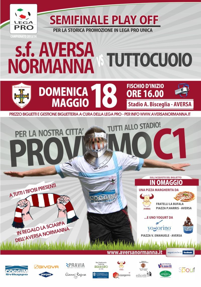 Nella città normanna si respira un’aria di forte attesa e mobilitazione per un appuntamento con la storia, non solo sportiva, dell’intera comunità. Il match con il Tuttocuoio potrebbe dare alla compagine granata la possibilità dell’accesso, per la prima volta, in una categoria mai raggiunta prima d’ora. Centrare la promozione nella Serie C Unica significherebbe per Aversa e l’Aversa Normanna maggiore visibilità sui network televisivi nazionali e sulla rete (non solo con gli highlight delle gare ma anche con la diretta streaming dell’intero incontro), oltre a disputare numerosi derby e confrontarsi con realtà nuove e importanti del panorama calcistico nazionale, a partire dalle squadre retrocesse dalla serie B. C’è da superare questo primo scoglio e c’è bisogno dell’apporto di tutti!