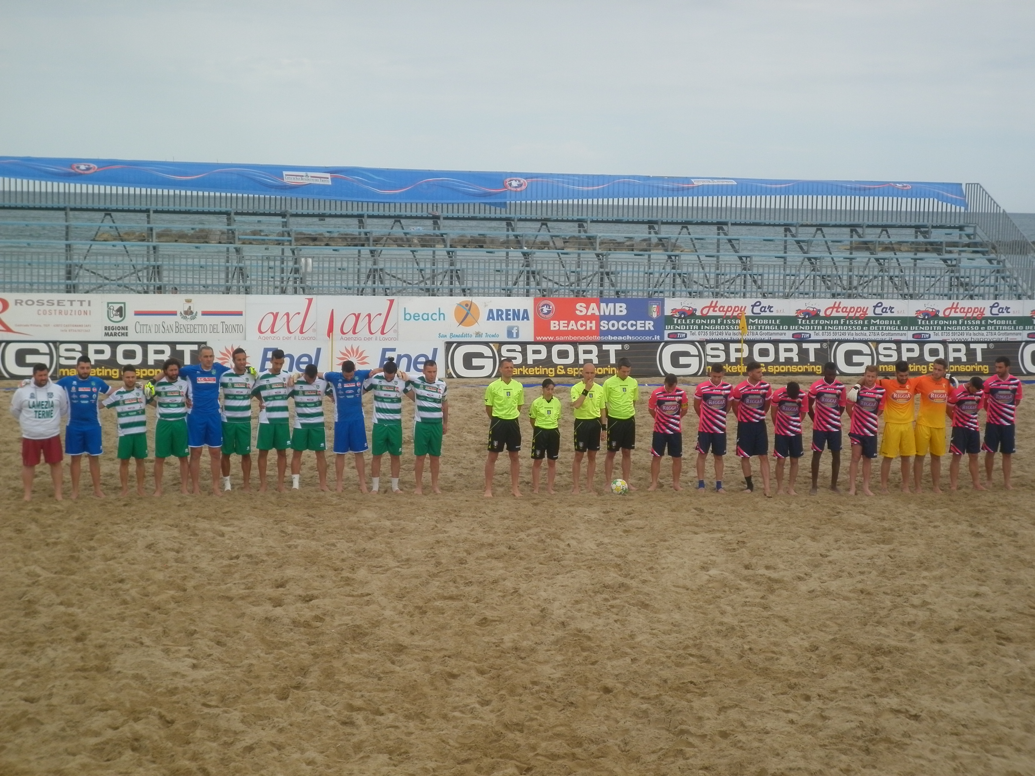 SECONDO TEMPO: Moxedano guida la riscossa casagiovese con la splendida semirovesciata, su sponda di Portone, che lascia secco D’Augello e fa strabiliare gli occhi ai tifosi presenti alla “Smart Beach Arena” di San Benedetto del Tronto (13’). I casertani insistono ma vanno a sbattere sul muro eretto da D’Augello, reattivo nello smanacciare in corner la rovesciata a colpo sicuro di Corsale (14’). Nel loro miglior momento, i giallorossi vengono castigati da Orlando che trova l’aiuto del palo per trafiggere Merola e mettere una distanza affidabile tra le due compagini (19’). Dopo la doppia parata di Merola su Carnovale, Corsale prima e Palumbo poi vanno ad un soffio dal goal, assistiti da Tenneriello (22’). Essendo per molti la prima esperienza nel beach soccer e senza aver condotto neanche un allenamento di preparazione, gli atleti casagiovesi trovano più di qualche difficoltà ad abituarsi allo stile di gioco di codesto sport ma entrano pian piano in confidenza con i movimenti.