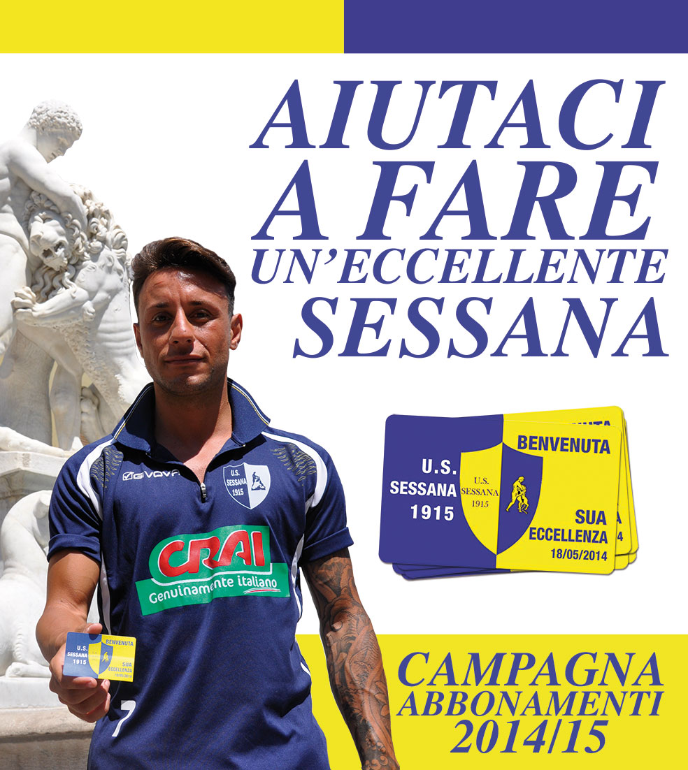 Come annunciato sui social network dal presidente Vrola, oggi pomeriggio la Sessana alle ore 18:30 presenterà la nuova campagna abbonamenti al salone dei quadri del Comune di Sessa Aurunca. Sarà questa l’occasione per svelare ai tifosi gialloblù i primi nomi ufficiali della Sessana 2014-2015 che parteciperà al campionato di Eccellenza. Nell’ambiente aurunco circolano tanti nomi, ma il presidente non ha voluto anticipare niente sui nomi che saranno presentati; si sa per certo che verranno presentati i primi acquisti ufficiali, oltre al nuovo mister che guiderà la compagine gialloblù. L’unica cosa sicura è che la Sessana punta a costruire una squadra competitiva che possa portare in alto il vessillo aurunco, una squadra che punta ad essere la mina vagante del campionato senza far ricorso a nessuna spesa folle.