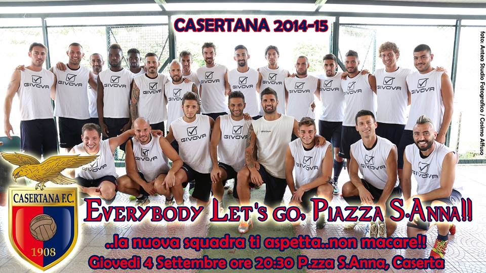 Tutto pronto per l’evento tanto atteso. Domani, 4 settembre, alle ore 20:30 in piazza S.Anna, la Casertana si presenterà ufficialmente ai suoi tifosi. Nel corso della serata, condotta dall’addetto stampa Giuseppe Frondella, sfileranno sul palco tutti coloro che prenderanno parte alla nuova avventura a tinte rossoblu nella stagione 2014/15. Vertici societari, dirigenza, staff tecnico, squadra e componenti del Settore giovanile della Casertana riceveranno l’abbraccio della piazza simbolo di casertanità. Nell’occasione ‘Maurizio Ha Fuso & The Bleachers’ proporranno la versione live dell’inno ufficiale dei falchetti ‘Everybody let’s go Casertana’. I tifosi sono invitati ad accorrere numerosi e a colorare di rossoblu la nostra piazza S. Anna.