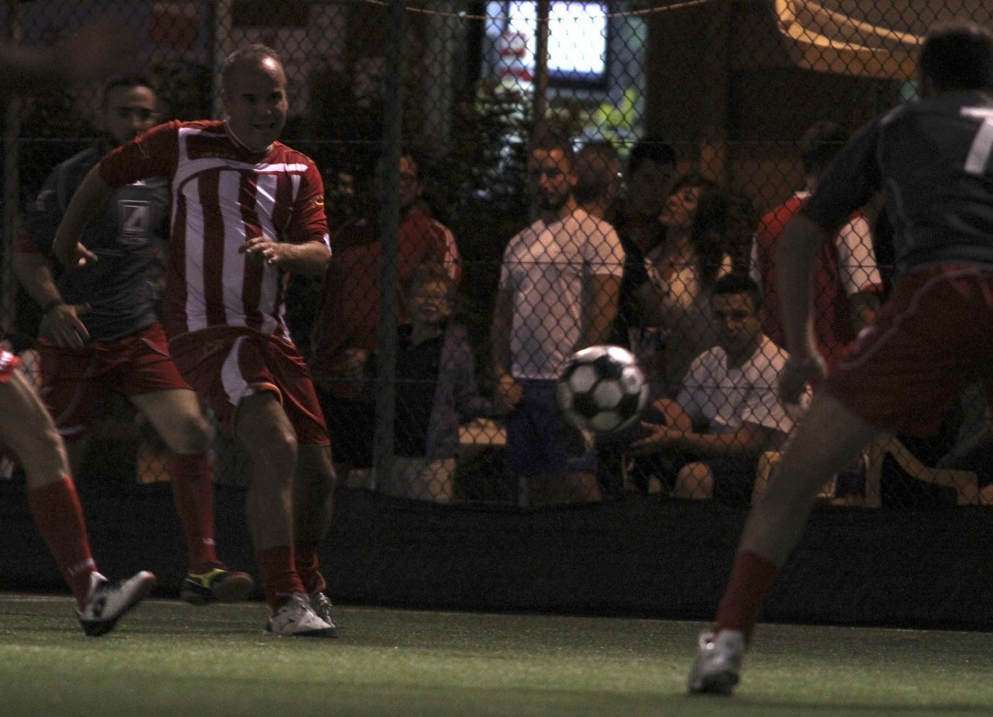 Gli spettatori di una gara della Champions League di calcio a 7 (foto Gianfranco Carozza)