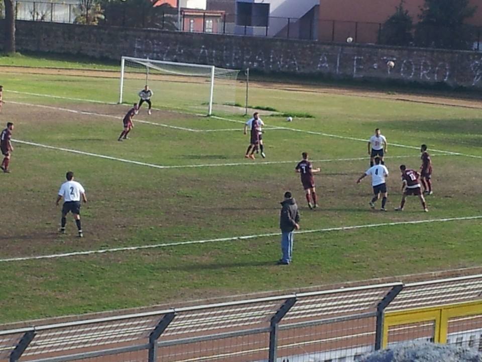 Un minuto dopo i granata passano. Assanti vince un rimpallo e si invola verso la porta dei fossatari, a tu per tu con Di Bartolomeo serve Tufano, accorso in soccorso dell’attaccante granata, il cui colpo di testa è vincente. L’Acerrana è così avanti di una rete a zero.