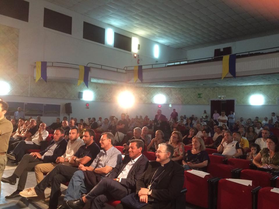 “Per cento anni” si è concluso con questa breve frase l’evento di celebrazione del 100° anno di fondazione della US Sessana 1915. Manifestazione che ha coinvolto tutti coloro che hanno vestito la gloriosa maglia gialloblù, la celebrazione del centenario ha dato anche il “via” ai lavori del nuovo stadio comunale. Alle ore 18,00 in Via Raccomandata si sono ritrovati tanti appassionati e le principali istituzioni comunali ed ecclesiastiche per scoprire insieme la prima pietra con l’inno d’Italia suonato dalla banda “Città di Castelforte” del Maestro Giovanni Izzo. Momenti di sentita commozione ed emozionante quando il Vescovo Sua Ecc.za Mons. Orazio Francesco Piazza ha tagliato il nastro gialloblù del nuovo impianto di gioco insieme a Vincenzo, figlio dell’indimenticabile Ernesto Prassino a cui sarà intitolato lo stadio. Tutte le autorità presenti simbolicamente gettano cemento come inizio del nuovo stadio, partiranno a breve i lavori per “un sogno diventato realtà” come recita uno striscione dei tifosi apposto sul muro di cinta. Applausi a scena aperta a cui segue un momento di preghiera a cura dell’alto prelato che al termine si trasforma in un “ultras” intonando uno dei più famosi cori che hanno accompagnato quest’anno la squadra gialloblù.