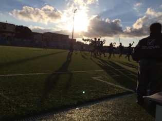 PRIMO TEMPO. La Sessana scende in campo con un’insolito completino tutto nero, in segno di protesta per gli errori arbitrali subiti domenica scorsa contro il Savoia. L’avvio di gara è di marca Arzanese con il lancio da metà campo di Criscito che pesca Matrullo sulla destra alle spalle di Arigò, controllo in area e destro alto del numero sette (2’). La prima risposta degli aurunci nasce da un’iniziativa di Signorelli (che in fase d’attacco funge da attaccante aggiunto) sull’out sinistro, la palla perviene al capitano Fava Passaro che calcia con il destro e impegna Di Fiore in una parata bassa (13’). Centoventi secondi dopo la Sessana passa: Mignogna mette al centro uno spiovente da destra, spizzata di Fava Passaro e palla a Signorelli che di testa beffa Di Fiore e insacca la rete del vantaggio (15’). Sbanda vistosamente l’Arzanese dopo il gol subito: al 19’ Improta in percussione serve Fava Passaro che calcia di destro e mette di poco a lato; clamorosa occasione aurunca al 24’ quando Addeo, nel tentativo di servire un retropassaggio a Di Fiore serve Caterino che, tutto solo davanti all’estremo difensore arzanese, mette al lato di un soffio sciupando il raddoppio. Dieci minuti dopo è Borrelli a rendersi protagonista di una leggerezza, sbagliando il controllo su retropassaggio della difesa e servendo la palla a Crispino che lo dribbla e poi mette incredibilmente fuori a porta sguarnita (34’). Un’occasione per parte prima dell’intervallo. Al 40’ Signorelli imbecca Fava Passaro con una punizione dalla destra, inzuccata del capitano e palla tra le braccia di Di Fiore. Quattro minuti dopo Matrullo va ancora una volta via ad Arigò e poi prova a sorprendere Borrelli con un forte diagonale destro, ma il portiere gialloblù è attento e para in tuffo, conservando il vantaggio e mandando i suoi al riposo sulla situazione di 0-1.