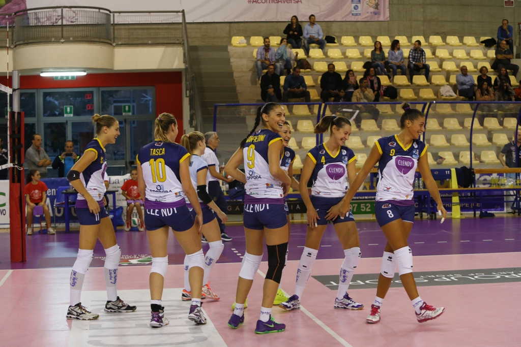 Soffre ma dimostra di essere una grande squadra. La Clendy Aversa conquista i primi punti del campionato vincendo 3-2 contro Olbia in un PalaJacazzi pieno di entusiasmo e calore. Grande prestazione delle ragazze di coach Luciano Della Volpe nei primi due set, poi un piccolo calo fisico ha costretto la contesa al tie-break. Ma con il pubblico ad incitare capitan Drozina e compagne il quinto set diventa una pura formalità con le normanne che si portano quindi a 2 in campionato.
