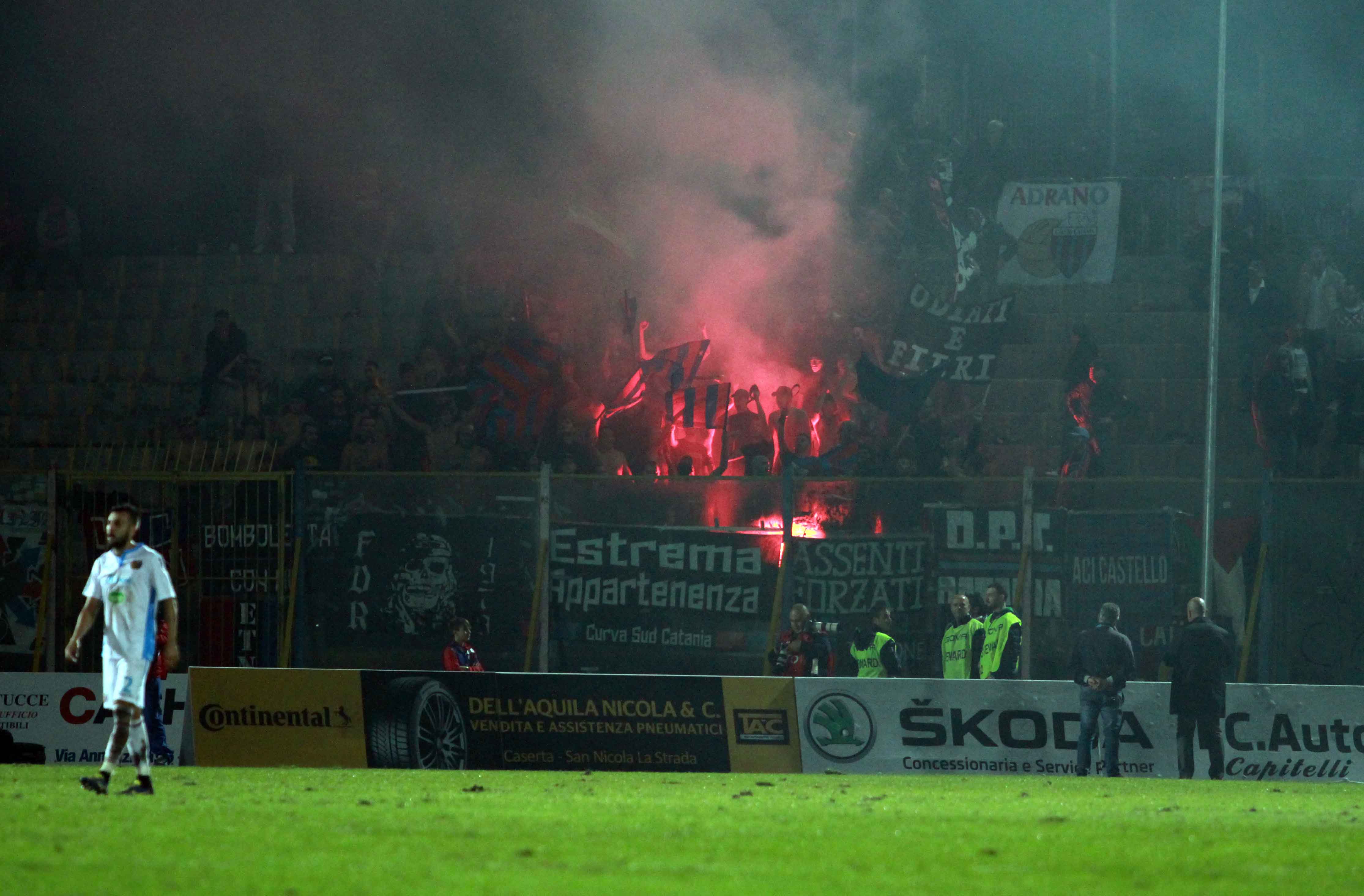 Si apprende dalla Questura di Caserta che sei tifosi della Casertana sono stati daspati in seguito agli scontri con i sostenitori del Catania lo scorso 19 ottobre. Ecco il comunicato della Questura: Il 19 ottobre U.S., presso lo stadio “Pinto” di Caserta si è disputato l’incontro di calcio tra le squadre Casertana F.C. ed AC.Catania, valevole per il Campionato Nazionale di Lega Pro Girone “C”. In occasione di detto incontro, la Polizia di Stato di Caserta, denunciava sei tifosi casertani, di cui quattro per resistenza a Pubblico Ufficiale e due per possesso di oggetti atti ad offendere.