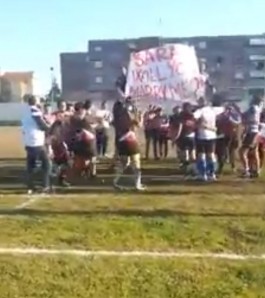 A volte nei ‘teatri’ dello sport succedono cose che con l’attività agonistica in senso stretto c’entrano poco, ma che al pari dello sport sono ricchi di umanità; momenti pieni di tensione emotiva, quei momenti che ti possono far fare o un passetto in avanti o perché no un ‘grande passo’. Domenica sul campo degli IACP di Santa Maria Capua Vetere, piccolo teatrino di periferia, si è giocata la gara di serie C2 di rugby tra la compagine locale dello Spartacus Rugby Social Club e il Vesuvio Rugby. I sammaritani hanno incassato la quarta sconfitta consecutiva e al fischio finale il risultato ha premiato i partenopei per 20-10 (ma 2 mete a 1 per lo Spartacus). Se per la squadra e la giovane società della città del Foro è stato un altro colpo da incassare chi ha incassato qualcosa di positivo è stato Daniele Delle Femine, estremo dello Spartacus e all’occorrenza tutto fare nella compagine di Fico e Paolisso. Infatti, il barbuto ex giocatore del Clan, che si divide tra la palla ovale e il suo lavoro in banca, a fine gara ha messo in scena una specie di touche, con la collaborazione sia dei compagni di squadra sia degli avversari per esporre un cartello scritto in inglese che recitava, tradotto: “Sarah vuoi sposarmi?”.