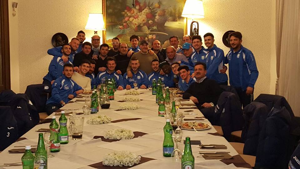 Nella bella tavolata a tinte biancoazzurre si è parlato non solo di calcio, infatti le cene sono ottimi appuntamenti per conoscersi meglio anche al di fuori dal campo. Ne è convinto di questo il centrocampista classe ’93 Pasquale Pezzullo, uno degli atleti dotati di maggiore classe all’interno del gruppo: ”Ieri (giovedì ndr) è stata una buona serata. “Uniti si vince” è sempre stato un motto vincente e sono sicuro che grazie a questa cena, saremo ancora più compatti. È molto importante vivere momenti del genere, e di questo devo ringraziare il presidente Andrea Guida, il vicepresidente Giuseppe Iannotta, l’allenatore Giuseppe Cicala, lo staff tecnico al completo ed il segretario Raffaele Iannotta. Una menzione particolare va al dg Modesto Giraldi che mi ha portato qui a Macerata Campania ed al ds Salvatore De Cesare che, nonostante conosco da poco, si sta dimostrando una persona leale e seria. Tutte queste figure ci danno una grande mano e ci sostengono per conquistare il prima possibile la salvezza”.