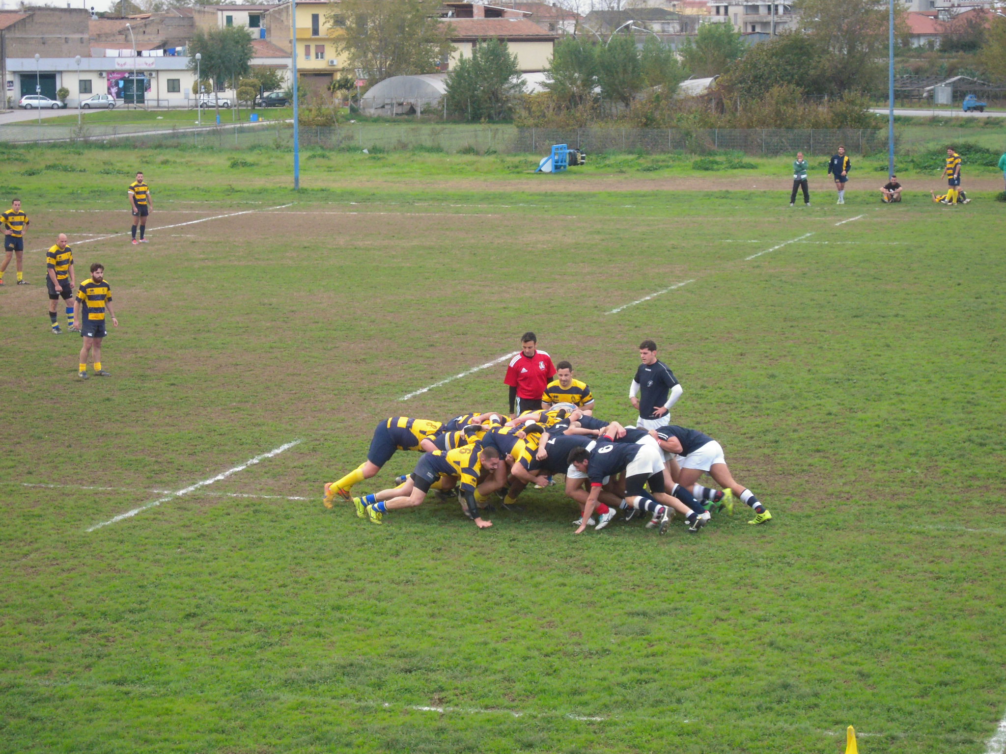 Nei primi 10 minuti del match c’è una fase di studio e le squadre si equivalgono. Poi arriva la meta del Rende, con una buona trasmissione a largo (non trasformata) e la stessa libertà il Clan la fa godere ai biancorossi dopo appena cinque minuti. Buona apertura e ritardo dei gialloblù a chiudere la strada al secondo centro calabrese che schiaccia l’ovale in meta. Anche questa marcatura non viene trasformata, ma il risultato dice Rende 10, Clan 0 all’intervallo, con gli ospiti che tentano l’assalto, ma si stancano e non incidono. Il secondo tempo è caratterizzato da tanto nervosismo e tanti falli da ambo le parti. Anche all’andata non fu una gara tranquilla. Alla fine si contano un’espulsione per parte, 3 gialli per il Rende e 2 per i sammaritani che restano senza ricambi. Il Rende ne approfitta e segna la meta (con conversione) per il 17-0, anche se il Clan tenta la reazione e va in meta da una punizione battuta veloce con Fabio Leonelli (17-5). Sul finire del match un piazzato preciso del Rende scrive il 20-5 definitivo sul referto e per la salvezza è tutto rimandato all’ultimo turno, contro il Torre del Greco in casa.