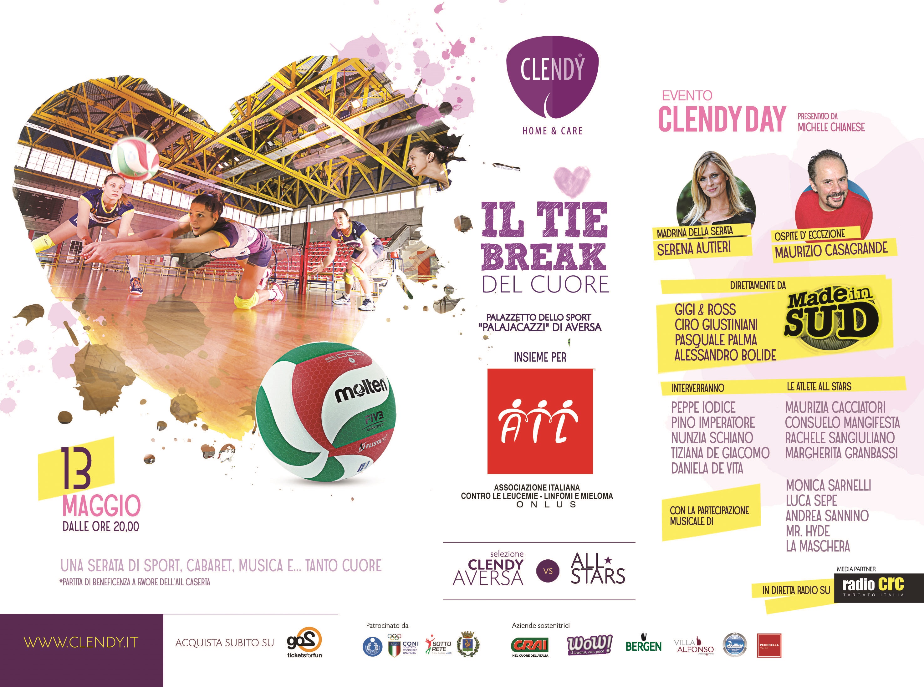 Al ‘Palajacazzi’ di Aversa ci sarà una serata di spettacolo, sport, cabaret, sorrisi e tanto cuore che vedrà come madrina l’attrice e cantante Serena Autieri e presentatore Michele Chianese, speaker di Radio CRC, media partner dell’evento. Sul parquet del palazzetto normanno si ‘sfideranno’ venerdì 13 maggio dalle 20 le giocatrici della Clendy Aversa e le ‘All Stars’, pallavoliste e atlete che hanno fatto la storia dello sport italiano.