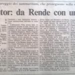 L’anno dopo, una vittoria per parte. L’8 dicembre 1985 il Gladiator trionfa per 3-2 con la rete di D’Agostino e la doppietta su rigore di Calatè che ribaltò il vantaggio ospite. Al ritorno, il 20 aprile 1986, il Rende si vendicò vincendo per 3-1 con il vantaggio iniziale di D’Agostino che fu solo illusorio, prima della remuntada biancorossa. Una stagione difficile per i neroazzurri che retrocessero in D, a causa dei soli 26 punti raccolti che valsero un pessimo penultimo posto.