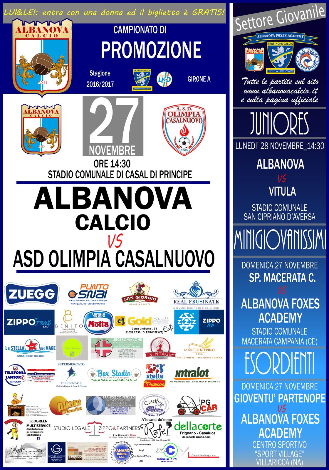 90fd784b-0540-4b2c-86cd-7b2a6ef8b337Meno di 48 ore al calcio d’inizio di Albanova-Olimpia Casalnuovo, big match della dodicesima giornata di Promozione girone A. Domenica alle 14.30 il team di Sanchez tornerà al Comunale di Casal di Principe, per continuare la corsa in vetta alla classifica dopo le due vittorie consecutive in trasferta sui campi di Forza e Coraggio e Maddalonese.