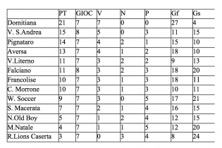 FRANCOLISE: Ivano, Razzino, Palmieri, Cerullo,Bosco, Volpe, Lanna(35’Lanna 77’Lambiase), Nacca, Landolfi, Pratillo, Iodice.