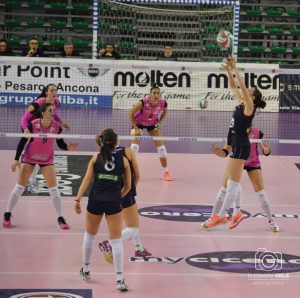 Vince Pesaro 3-1, ma Caserta ha ben poco da recriminare. Ancora un volta le rosanero sono andate oltre l’ostacolo, ancora una volta hanno provato a fare la partita mettendoci testa, cuore e grinta. Hanno vinto il primo set, subito la veemente reazione delle marchigiane nel secondo, hanno giocato testa a testa il resto della sfida. Alla fine si sono dovute arrendere alla forza delle rivali che con questo successo portano a sette la loro striscia positiva. Per la VolAlto cambia ben poco in classifica. Per la salvezza tutto è ancora aperto. Domenica si ritorna a giocare sul taraflex amico. Dovrebbe essere l’ora del rientro di Pasuccci e dell’esordio della Crittenden. Siamo lontani dai titoli di coda. Tutto è ancora aperto.