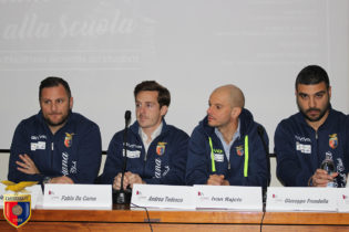 “Sport, non è solo un gioco. Preparazione, studio e dedizione per la conquista di risultati”. Questo il tema che ha animato la prima tappa del tour della Casertana terrà negli istituti di Terra di Lavoro. Oltre 200 studenti hanno affollato l’Aula Magna del Liceo ‘Manzoni’ dando vita ad una piacevole mattinata all’insegna dei colori rossoblu. Ad aprire la mattinata è stato il dirigente scolastico Adele Vairo che ha fatto gli onori di casa. A lei, il direttore generale Giuseppe Materazzi ha consegnato un pallone ufficiale della Lega Pro con le firme di tutte i calciatori della Casertana: “Incontri come questi sono importanti per avvicinare la squadra ai giovani di questo territorio – ha commentato il dg – E’ quanto mai importante prendere coscienza del fatto che lo sport è uno strumento per veicolare messaggi che vanno oltre il semplice rettangolo di gioco. Tra questi senza dubbio la socializzazione. Importante stare insieme, confrontarsi e maturare esperienze. Il calcio, nello specifico, deve essere visto innanzitutto come un divertimento. Poi, però, alcuni hanno la fortuna di farlo diventare la proprio lavoro. E qui diventano importanti preparazione, dedizione e studio continuo. Nessun risultato è frutto del caso”. A fargli da eco il responsabile dell’Area tecnica Fabio De Carne: “Lo studio è importante. Lo sport è una professione come tutte le altre, per questo richiede dedizione e preparazione. Ai ragazzi dico di scegliere il percorso che sentono più vicino alle proprie capacità. E non si tratta per forza di quello che gli stessi genitori hanno in mente. Fondamentale innanzitutto conservare l’umiltà. E’ una peculiarità imprescindibile per poter crescere”.