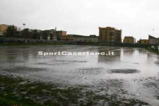E’ durata appena sette minuti la sfida tra la Maddalonese e il Villa Literno. Un vero e proprio nubifragio ha costretto l’arbitro Alessio De Cicco della sezione di Nola a sospendere l’incontro. Il ‘Cappuccini’ è divenuto un autentico pantano, praticamente una piscina in cui era impossibile far rotolare il pallone, ma soprattutto un pericolo per i ventidue in campo e la terna arbitrale che sin da subito ha fatto fatica a mantenere l’equilibrio. i padroni di casa erano partiti molto bene con un colpo di testa di Pucino intercettato da Della Corte sugli sviluppi di un corner. Era il secondo minuto. Poi la pioggia continuava a cadere incessante e la decisione con i capitani di sospendere definitivamente il match. Per la data del recupero bisognerà attendere le decisioni del Comitato Regionale Campano.